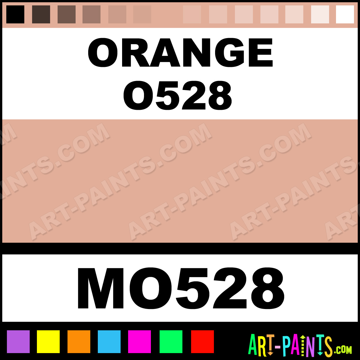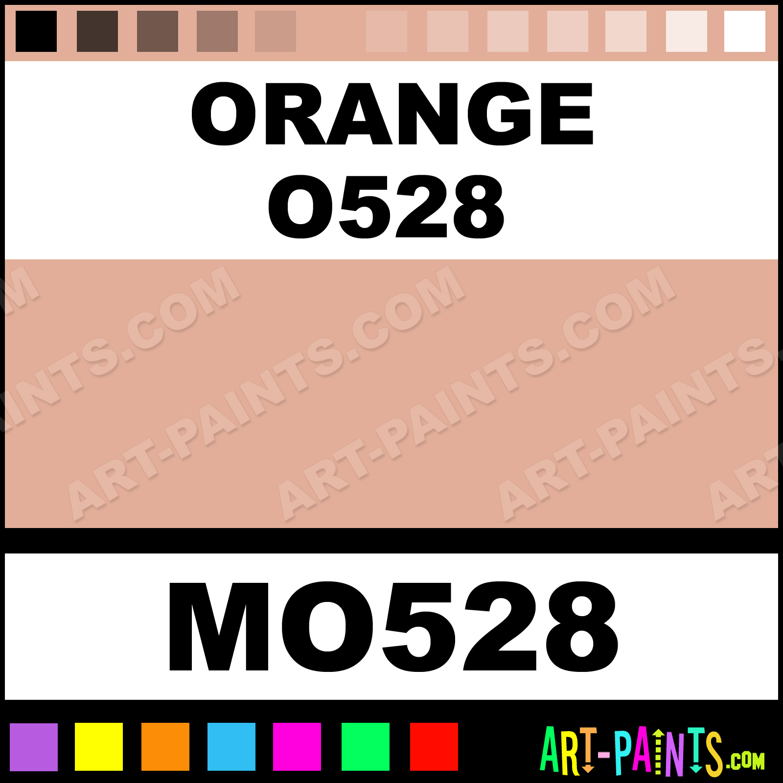 This beautiful Tria Pens Paint Marker shade is called Orange O528, and comes from a company called Letraset. Their product number, along with the HTML color code, RGB, and CMYK codes are listed below. This Beautiful Shade of Orange O528 and other Paintmarkers can be found in the Letraset Tria Pens Art Paint Marking Pen Gallery! Also be sure to browse through the other wonderful Paintmarker Professional Color Galleries to see more of Letraset Tria Pens Paint Marker Brand Paints and other Marking Pen Paint Manufacturers. And as always, Paint Paint Paint!  -Art-Paints.com