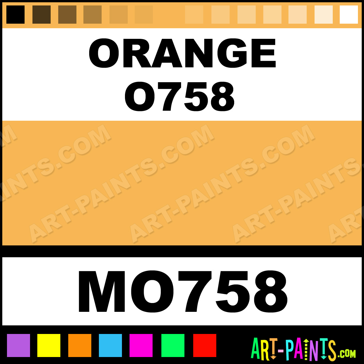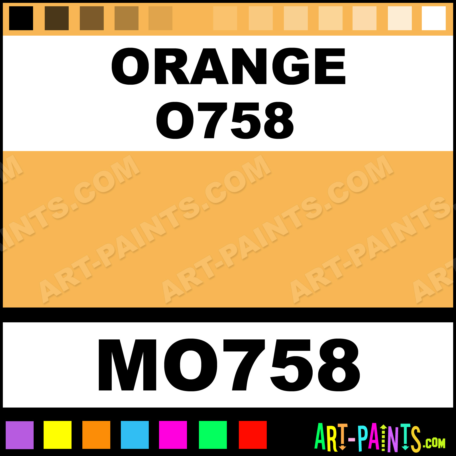 This beautiful Tria Pens Paint Marker shade is called Orange O758, and comes from a company called Letraset. Their product number, along with the HTML color code, RGB, and CMYK codes are listed below. This Beautiful Shade of Orange O758 and other Paintmarkers can be found in the Letraset Tria Pens Art Paint Marking Pen Gallery! Also be sure to browse through the other wonderful Paintmarker Professional Color Galleries to see more of Letraset Tria Pens Paint Marker Brand Paints and other Marking Pen Paint Manufacturers. And as always, Paint Paint Paint!  -Art-Paints.com