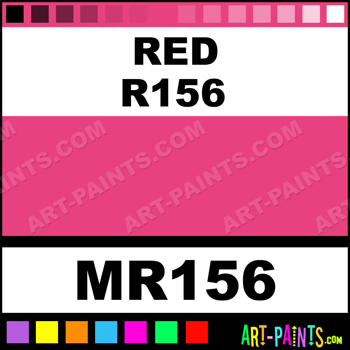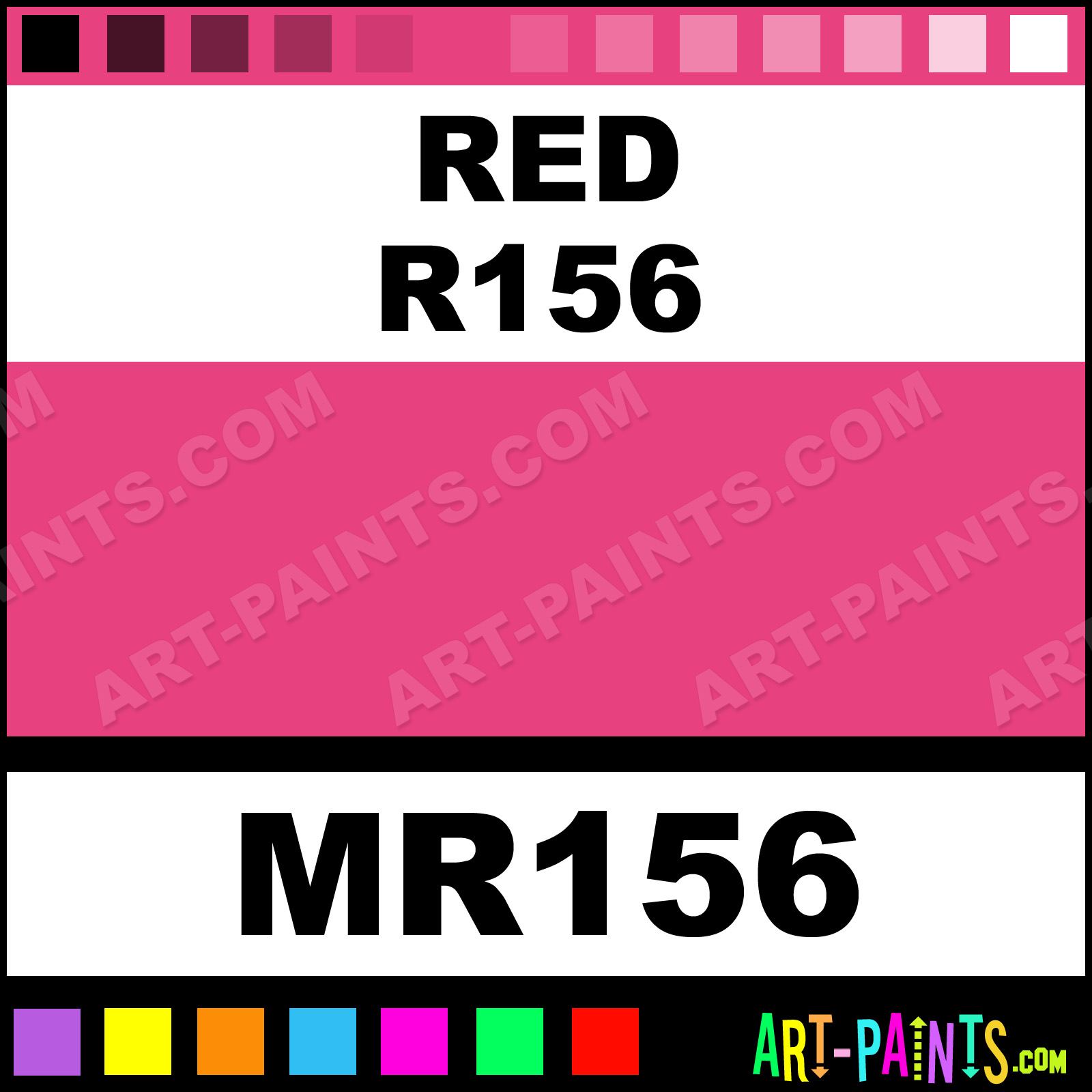 This beautiful Tria Pens Paint Marker shade is called Red R156, and comes from a company called Letraset. Their product number, along with the HTML color code, RGB, and CMYK codes are listed below. This Beautiful Shade of Red R156 and other Paintmarkers can be found in the Letraset Tria Pens Art Paint Marking Pen Gallery! Also be sure to browse through the other wonderful Paintmarker Professional Color Galleries to see more of Letraset Tria Pens Paint Marker Brand Paints and other Marking Pen Paint Manufacturers. And as always, Paint Paint Paint!  -Art-Paints.com