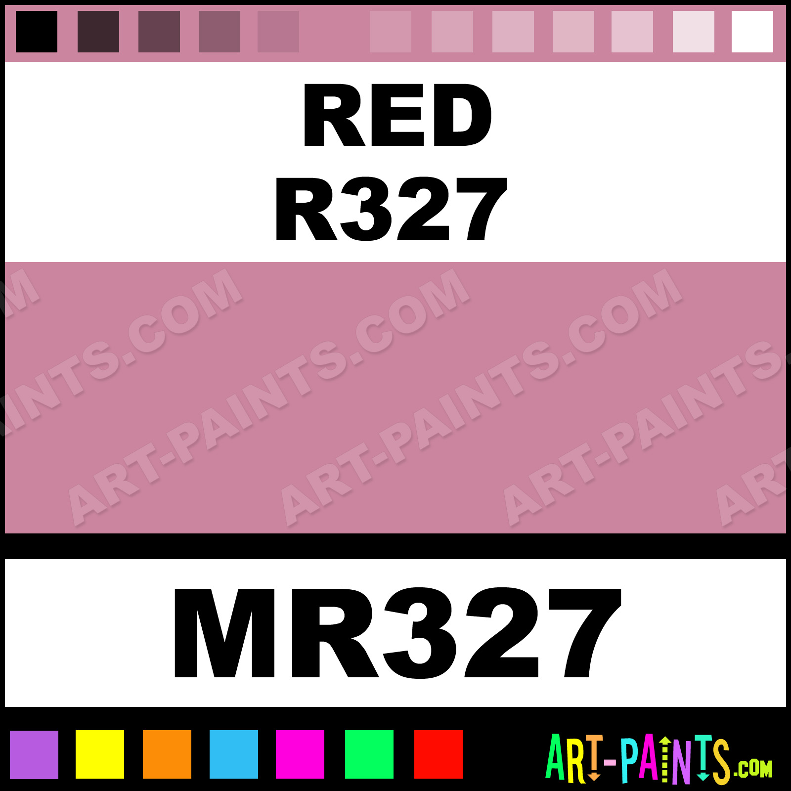This beautiful Tria Pens Paint Marker shade is called Red R327, and comes from a company called Letraset. Their product number, along with the HTML color code, RGB, and CMYK codes are listed below. This Beautiful Shade of Red R327 and other Paintmarkers can be found in the Letraset Tria Pens Art Paint Marking Pen Gallery! Also be sure to browse through the other wonderful Paintmarker Professional Color Galleries to see more of Letraset Tria Pens Paint Marker Brand Paints and other Marking Pen Paint Manufacturers. And as always, Paint Paint Paint!  -Art-Paints.com