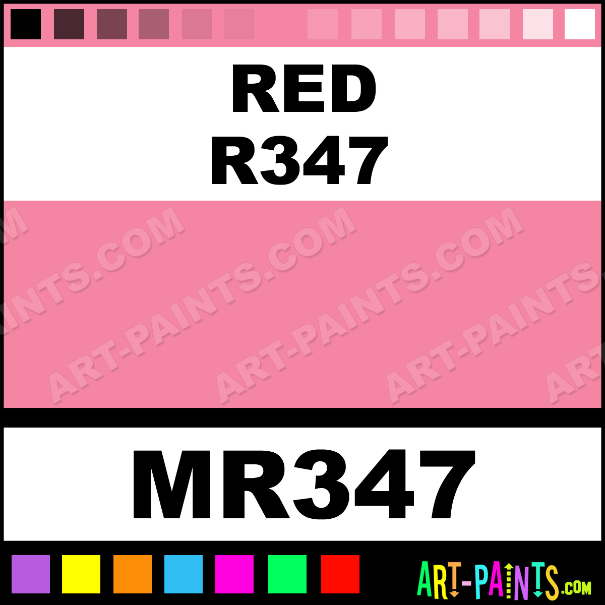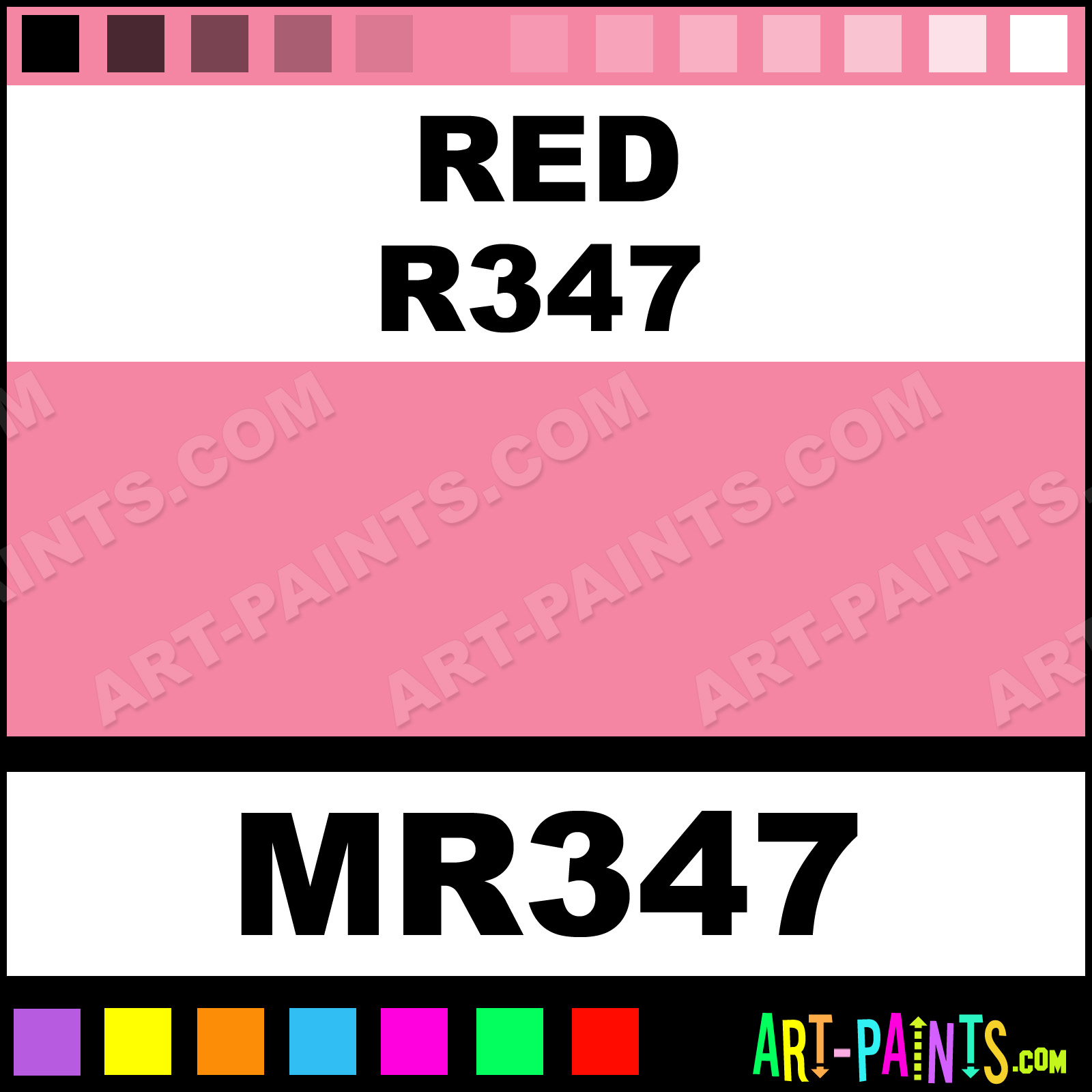 This beautiful Tria Pens Paint Marker shade is called Red R347, and comes from a company called Letraset. Their product number, along with the HTML color code, RGB, and CMYK codes are listed below. This Beautiful Shade of Red R347 and other Paintmarkers can be found in the Letraset Tria Pens Art Paint Marking Pen Gallery! Also be sure to browse through the other wonderful Paintmarker Professional Color Galleries to see more of Letraset Tria Pens Paint Marker Brand Paints and other Marking Pen Paint Manufacturers. And as always, Paint Paint Paint!  -Art-Paints.com