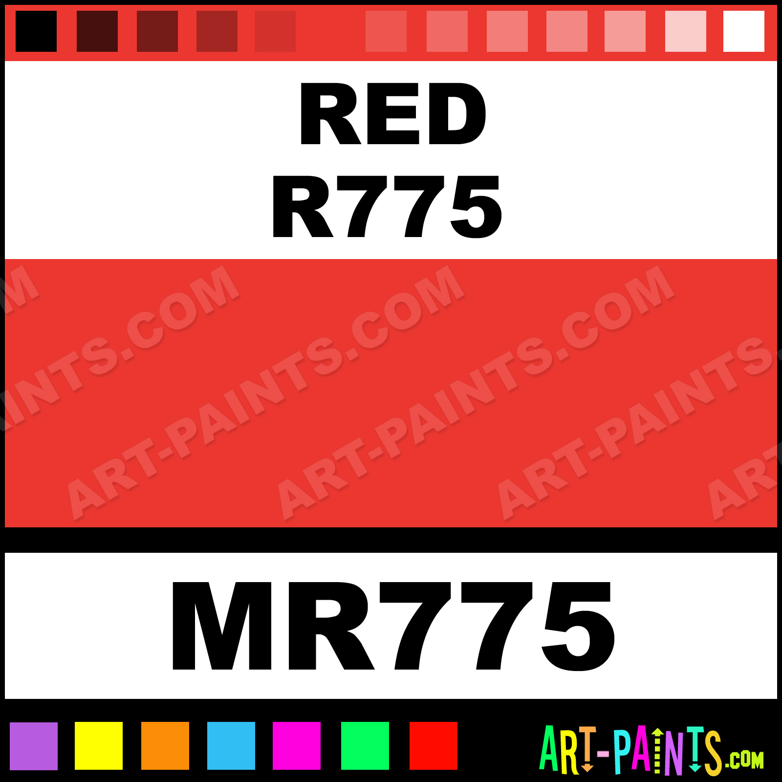 This beautiful Tria Pens Paint Marker shade is called Red R775, and comes from a company called Letraset. Their product number, along with the HTML color code, RGB, and CMYK codes are listed below. This Beautiful Shade of Red R775 and other Paintmarkers can be found in the Letraset Tria Pens Art Paint Marking Pen Gallery! Also be sure to browse through the other wonderful Paintmarker Professional Color Galleries to see more of Letraset Tria Pens Paint Marker Brand Paints and other Marking Pen Paint Manufacturers. And as always, Paint Paint Paint!  -Art-Paints.com