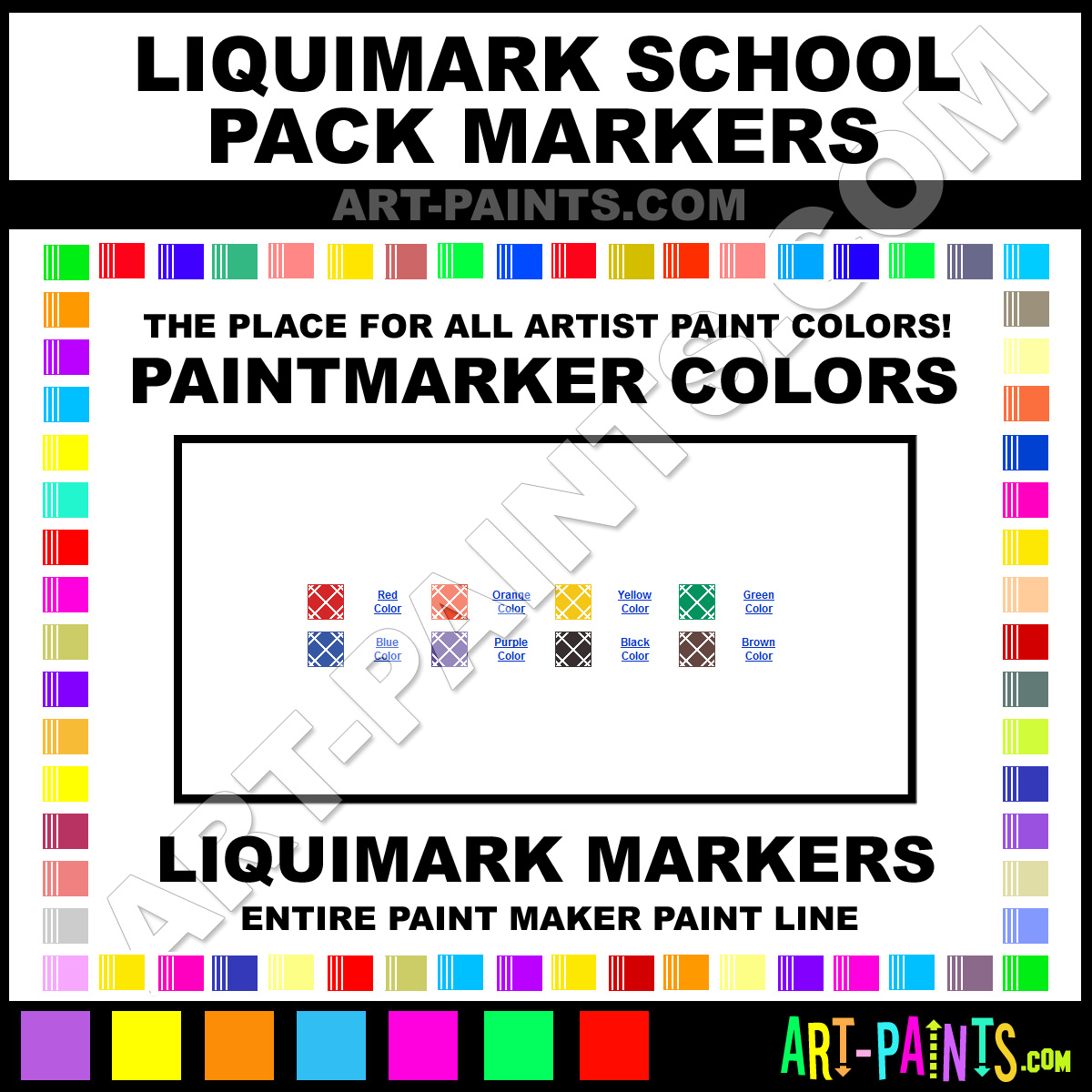 Liquimark knows Paintmarkers and Paintmarker Paints! They make a wonderful brand of paint called Liquimark School Pack Paint Marker Colors and Marking Pens that suits all types of artists. They strive to perfect the process of color and are one of the most popular Paintmarker Brand companies in the world. Enjoy their entire paint brand collection from the list below. Liquimark makes wonderful Artists Paints that everyone is sure to enjoy! Choose an Paint Marker Paint Color below to view that Hue and all their great related paints.     -Art-Paints.com