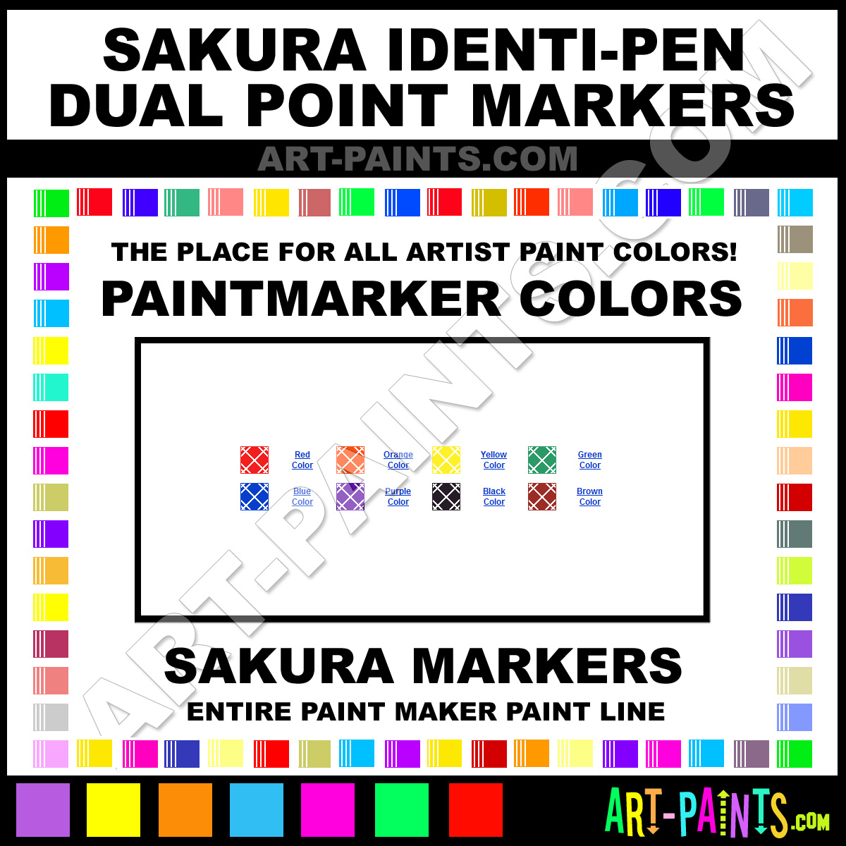 Sakura knows Paintmarkers and Paintmarker Paints! They make a wonderful brand of paint called Sakura Identi-Pen Dual Point Paint Marker Colors and Marking Pens that suits all types of artists. They strive to perfect the process of color and are one of the most popular Paintmarker Brand companies in the world. Enjoy their entire paint brand collection from the list below. Sakura makes wonderful Artists Paints that everyone is sure to enjoy! Choose an Paint Marker Paint Color below to view that Hue and all their great related paints.     -Art-Paints.com