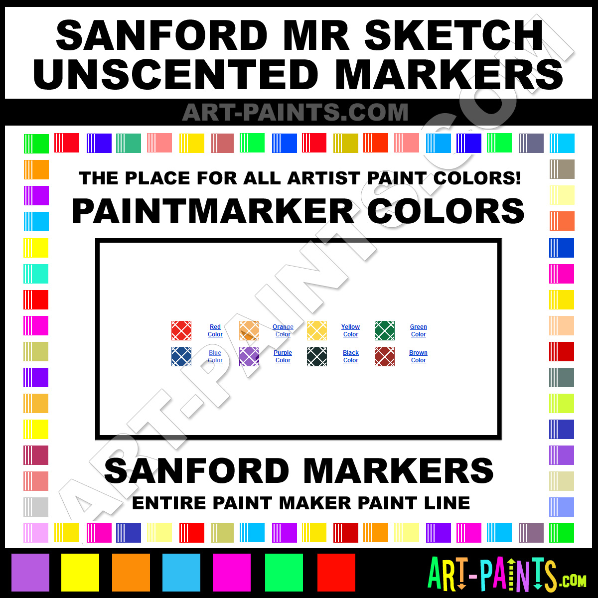 Sanford knows Paintmarkers and Paintmarker Paints! They make a wonderful brand of paint called Sanford Mr Sketch Unscented Paint Marker Colors and Marking Pens that suits all types of artists. They strive to perfect the process of color and are one of the most popular Paintmarker Brand companies in the world. Enjoy their entire paint brand collection from the list below. Sanford makes wonderful Artists Paints that everyone is sure to enjoy! Choose an Paint Marker Paint Color below to view that Hue and all their related paints.     -Art-Paints.com