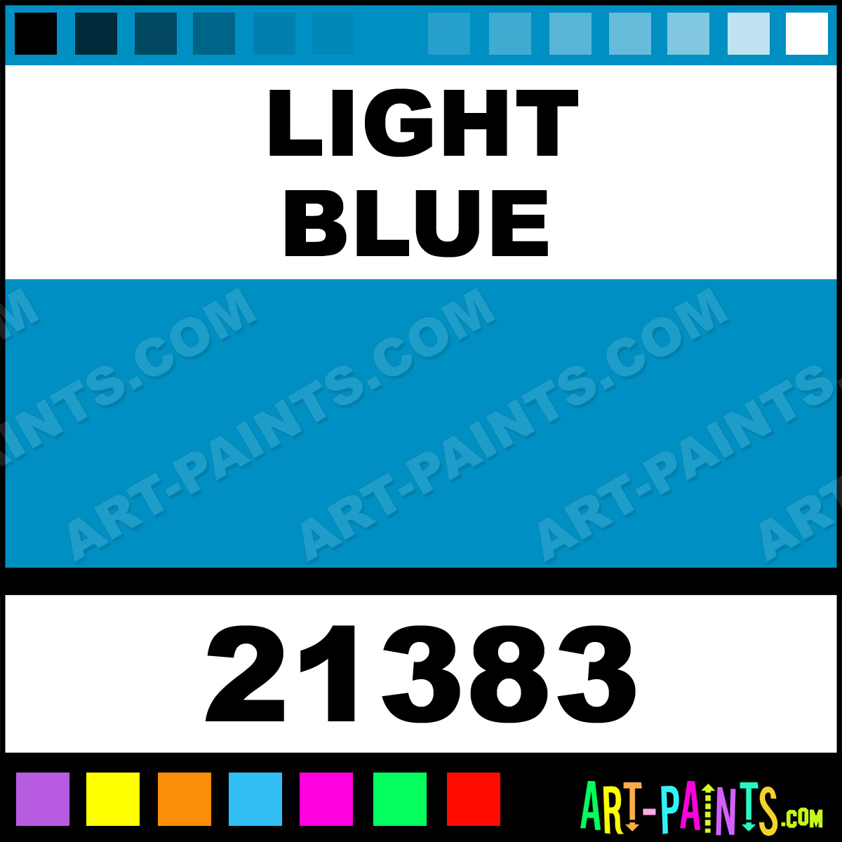 This beautiful Chisel Tip Paint Marker shade is called Light Blue, and comes from a company called Sharpie. Their product number, along with the HTML color code, RGB, and CMYK codes are listed below. This Beautiful Shade of Light Blue and other Paintmarkers can be found in the Sharpie Chisel Tip Art Paint Marking Pen Gallery! Also be sure to browse through the other wonderful Paintmarker Professional Color Galleries to see more of Sharpie Chisel Tip Paint Marker Brand Paints and other Marking Pen Paint Manufacturers. And as always, Paint Paint Paint!  -Art-Paints.com