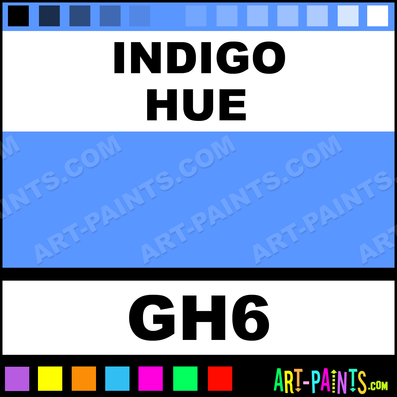 This beautiful Grip Highlighter Paint Marker shade is called Indigo, and comes from a company called Sharpie. Their product number, along with the HTML color code, RGB, and CMYK codes are listed below. This Beautiful Shade of Indigo and other Paintmarkers can be found in the Sharpie Grip Highlighter Art Paint Marking Pen Gallery! Also be sure to browse through the other wonderful Paintmarker Professional Color Galleries to see more of Sharpie Grip Highlighter Paint Marker Brand Paints and other Marking Pen Paint Manufacturers. And as always, Paint Paint Paint!  -Art-Paints.com