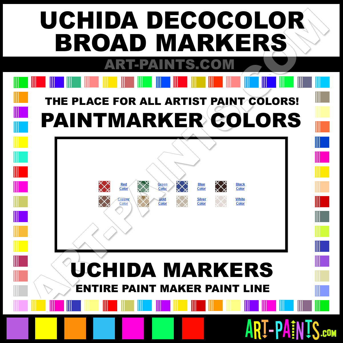 Uchida knows Paintmarkers and Paintmarker Paints! They make a wonderful brand of paint called Uchida DecoColor Broad Paint Marker Colors and Marking Pens that suits all types of artists. They strive to perfect the process of color and are one of the most popular Paintmarker Brand companies in the world. Enjoy their entire paint brand collection from the list below. Uchida makes wonderful Artists Paints that everyone is sure to enjoy! Choose an Paint Marker Paint Color below to view that Hue and all their great related paints.     -Art-Paints.com