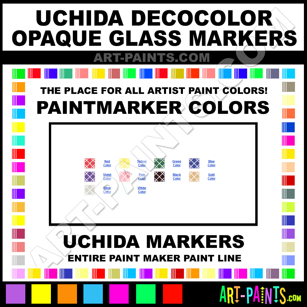 Uchida knows Paintmarkers and Paintmarker Paints! They make a wonderful brand of paint called Uchida DecoColor Opaque Glass Paint Marker Colors and Marking Pens that suits all types of artists. They strive to perfect the process of color and are one of the most popular Paintmarker Brand companies in the world. Enjoy their entire paint brand collection from the list below. Uchida makes wonderful Artists Paints that everyone is sure to enjoy! Choose an Paint Marker Paint Color below to view that Hue and all their related paints.     -Art-Paints.com