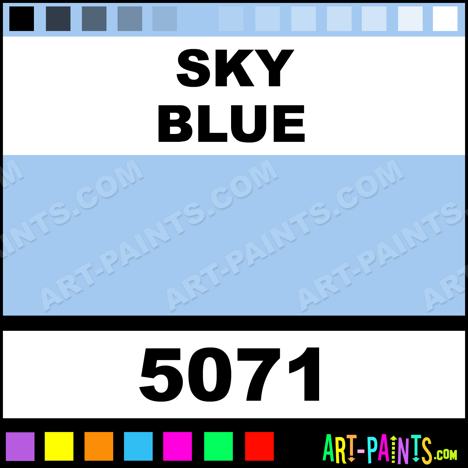 This beautiful Fabricmate Superfine Paint Marker shade is called Sky Blue, and comes from a company called Yasutomo. Their product number, along with the HTML color code, RGB, and CMYK codes are listed below. This Beautiful Shade of Sky Blue and other Paintmarkers can be found in the Yasutomo Fabricmate Superfine Art Paint Marking Pen Gallery! Also be sure to browse through the other wonderful Paintmarker Professional Color Galleries to see more of Yasutomo Fabricmate Superfine Paint Marker Brand Paints and other Marking Pen Paint Manufacturers. And as always, Paint Paint Paint!  -Art-Paints.com