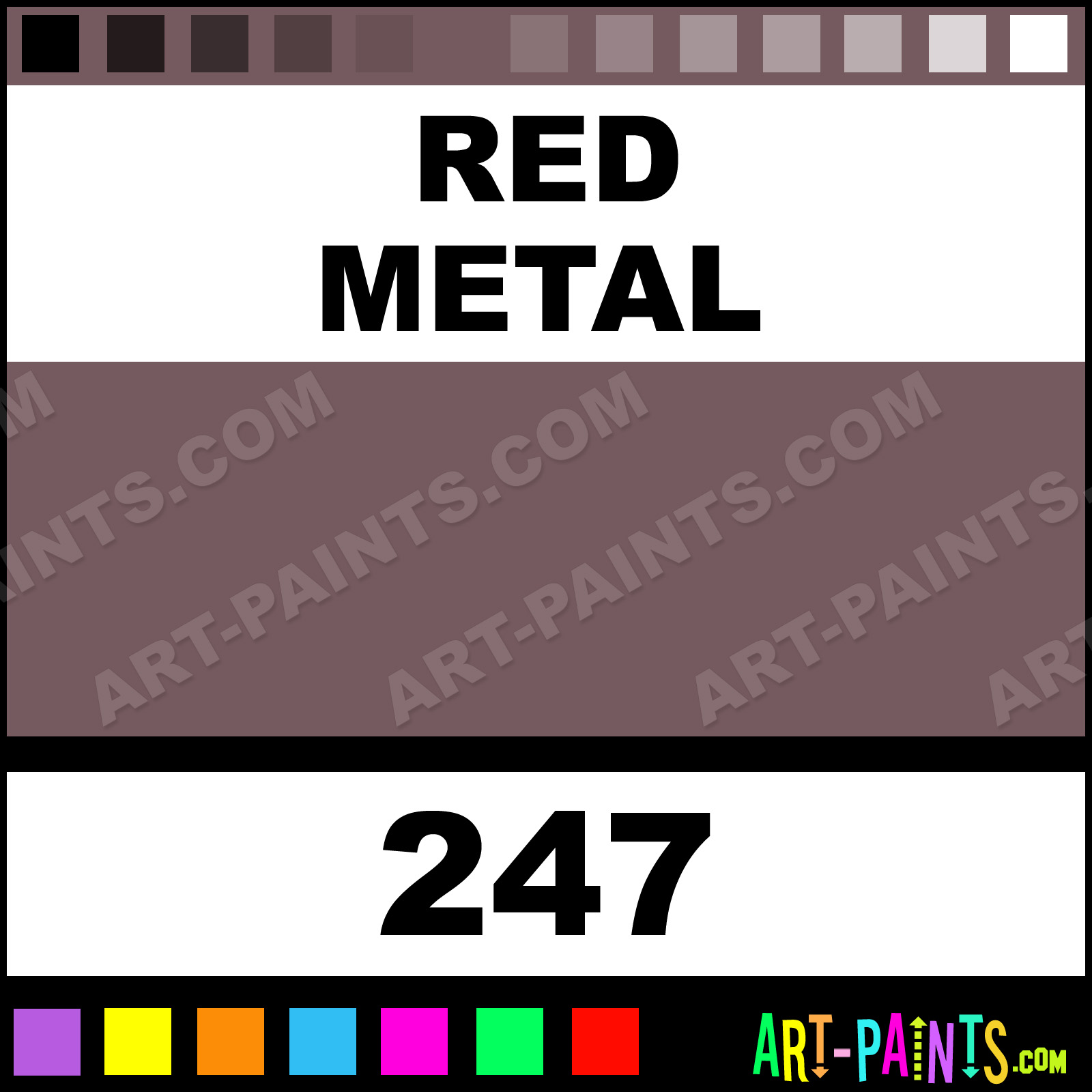 This beautiful Metallic Glaze Metal Paint Color shade is called Red Metal, and comes from a company called Blue Pearl. Their product number, along with the HTML color code, RGB, and CMYK codes are listed below. This Beautiful Shade of Red Metal and other Metal and Metallic Paint Colors can be found in the Blue Pearl Metallic Glaze Art Paint Gallery! Also be sure to browse through the other wonderful Professional Paint Color Galleries to see more of Blue Pearl Metallic Glaze Metal Paints and other Metallic Paint Manufacturers.   -Art-Paints.com
