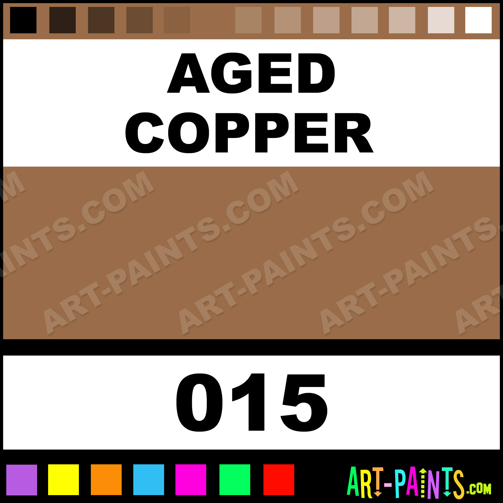 This beautiful Metallic Metal Paint Color shade is called Aged Copper, and comes from a company called Blue Pearl. Their product number, along with the HTML color code, RGB, and CMYK codes are listed below. This Beautiful Shade of Aged Copper and other Metal and Metallic Paint Colors can be found in the Blue Pearl Metallic Art Paint Gallery! Also be sure to browse through the other wonderful Professional Paint Color Galleries to see more of Blue Pearl Metallic Metal Paints and other Metallic Paint Manufacturers.   -Art-Paints.com
