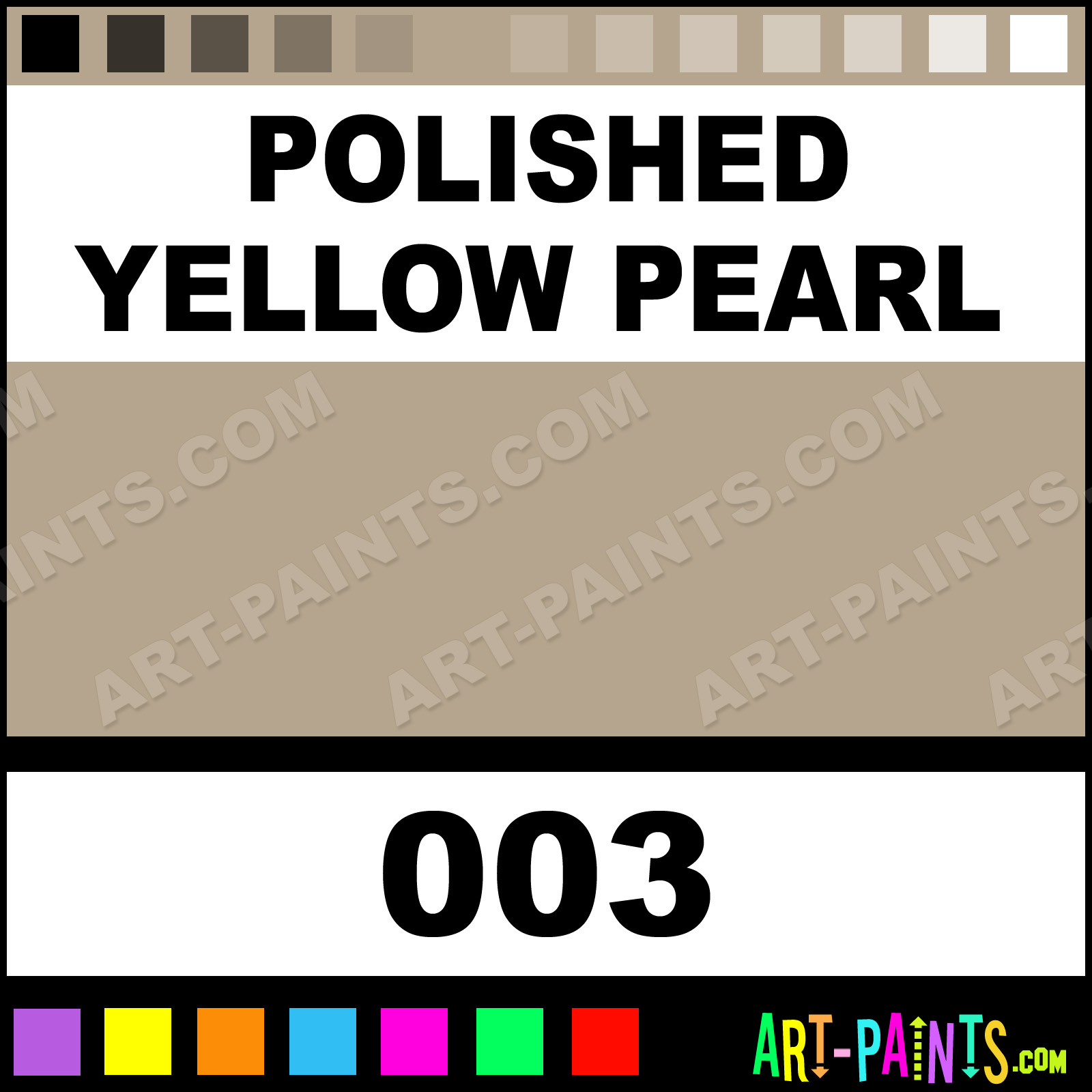 This beautiful Metallic Metal Paint Color shade is called Polished Yellow Pearl, and comes from a company called Blue Pearl. Their product number, along with the HTML color code, RGB, and CMYK codes are listed below. This Beautiful Shade of Polished Yellow Pearl and other Metal and Metallic Paint Colors can be found in the Blue Pearl Metallic Art Paint Gallery! Also be sure to browse through the other wonderful Professional Paint Color Galleries to see more of Blue Pearl Metallic Metal Paints and other Metallic Paint Manufacturers.   -Art-Paints.com