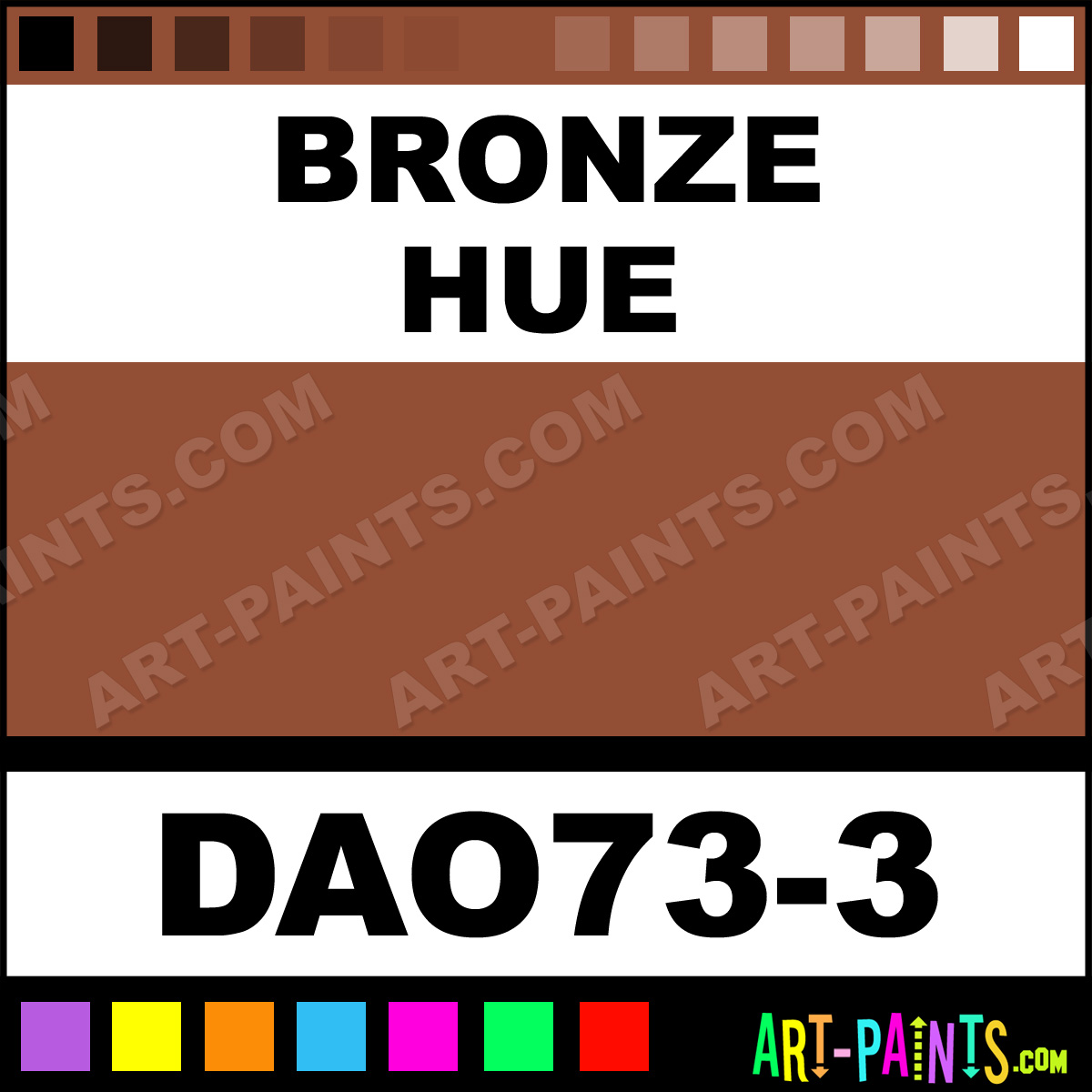 This beautiful Dazzling Metallics Metal Paint Color shade is called Bronze, and comes from a company called DecoArt. Their product number, along with the HTML color code, RGB, and CMYK codes are listed below. This Beautiful Shade of Bronze and other Metal and Metallic Paint Colors can be found in the DecoArt Dazzling Metallics Art Paint Gallery! Also be sure to browse through the other wonderful Professional Paint Color Galleries to see more of DecoArt Dazzling Metallics Metal Paints and other Metallic Paint Manufacturers.   -Art-Paints.com