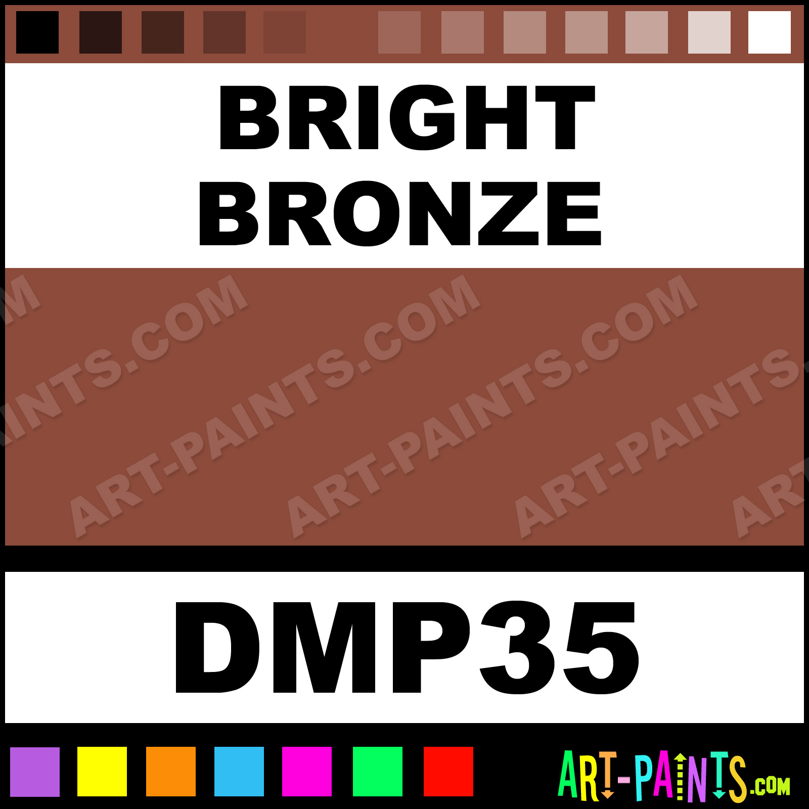 This beautiful No-Prep Metal Paint Color shade is called Bright Bronze, and comes from a company called DecoArt. Their product number, along with the HTML color code, RGB, and CMYK codes are listed below. This Beautiful Shade of Bright Bronze and other Metal and Metallic Paint Colors can be found in the DecoArt No-Prep Art Paint Gallery! Also be sure to browse through the other wonderful Professional Paint Color Galleries to see more of DecoArt No-Prep Metal Paints and other Metallic Paint Manufacturers.   -Art-Paints.com