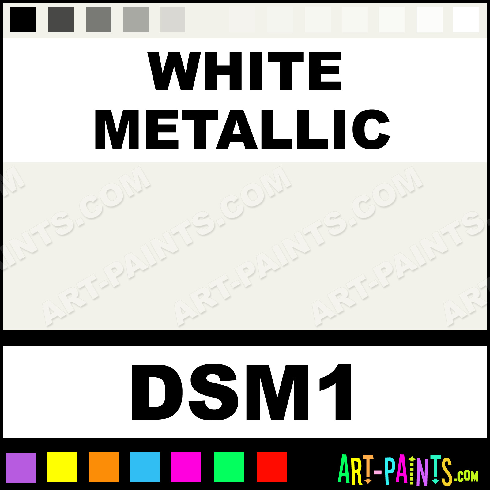 This beautiful SoSoft Metallics Metal Paint Color shade is called White Metallic, and comes from a company called DecoArt. Their product number, along with the HTML color code, RGB, and CMYK codes are listed below. This Beautiful Shade of White Metallic and other Metal and Metallic Paint Colors can be found in the DecoArt SoSoft Metallics Art Paint Gallery! Also be sure to browse through the other wonderful Professional Paint Color Galleries to see more of DecoArt SoSoft Metallics Metal Paints and other Metallic Paint Manufacturers.   -Art-Paints.com