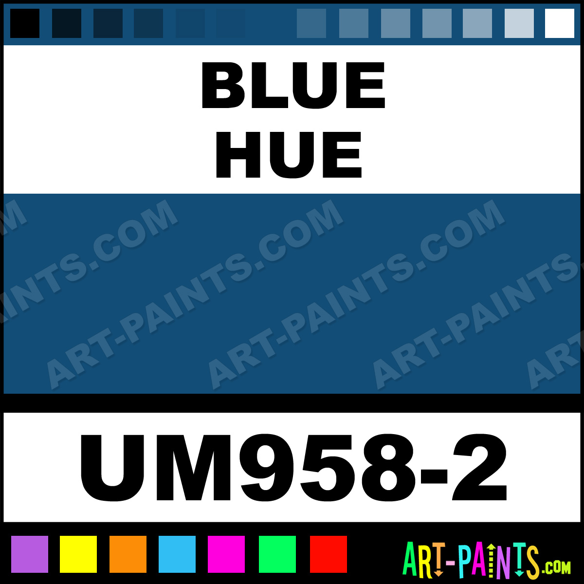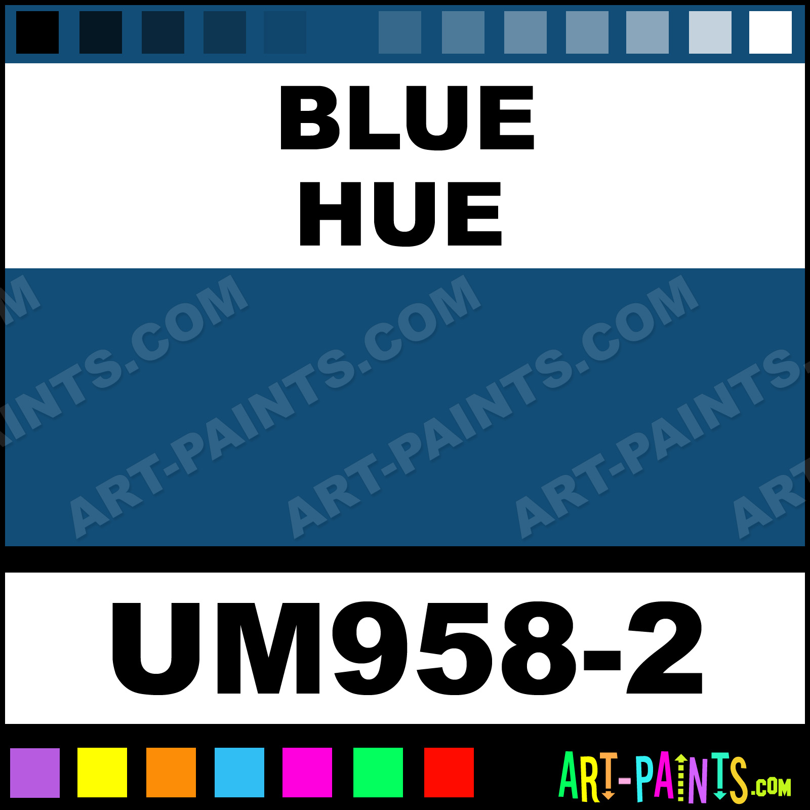 This beautiful Ultra Metallics Metal Paint Color shade is called Blue, and comes from a company called Duncan. Their product number, along with the HTML color code, RGB, and CMYK codes are listed below. This Beautiful Shade of Blue and other Metal and Metallic Paint Colors can be found in the Duncan Ultra Metallics Art Paint Gallery! Also be sure to browse through the other wonderful Professional Paint Color Galleries to see more of Duncan Ultra Metallics Metal Paints and other Metallic Paint Manufacturers.   -Art-Paints.com