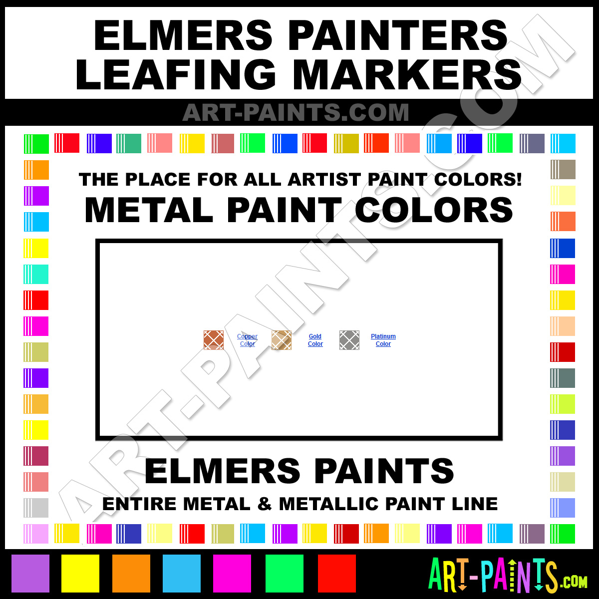 Elmers knows Metal Paints! They make a wonderful brand of paint called Elmers Painters Leafing Marker Metal Paint Colors that suits all types of artists. Great for Painting on Metal or Paints that look Metallic, either way they strive to perfect the process of color and are one of the most popular Metal Paint Brand companies in the world. Enjoy their entire Paint Brand collection below. Elmers makes wonderful Artists Metallic Paints that everyone is sure to enjoy! Choose a Metal Paint below to view that Hue or Color.     -Art-Paints.com
