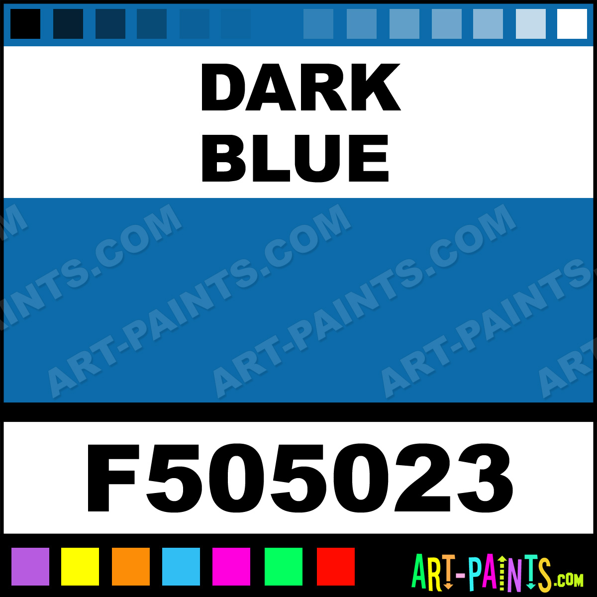 This beautiful Military Model Metal Paint Color shade is called Dark Blue, and comes from a company called Floquil. Their product number, along with the HTML color code, RGB, and CMYK codes are listed below. This Beautiful Shade of Dark Blue and other Metal and Metallic Paint Colors can be found in the Floquil Military Model Art Paint Gallery! Also be sure to browse through the other wonderful Professional Paint Color Galleries to see more of Floquil Military Model Metal Paints and other Metallic Paint Manufacturers.   -Art-Paints.com