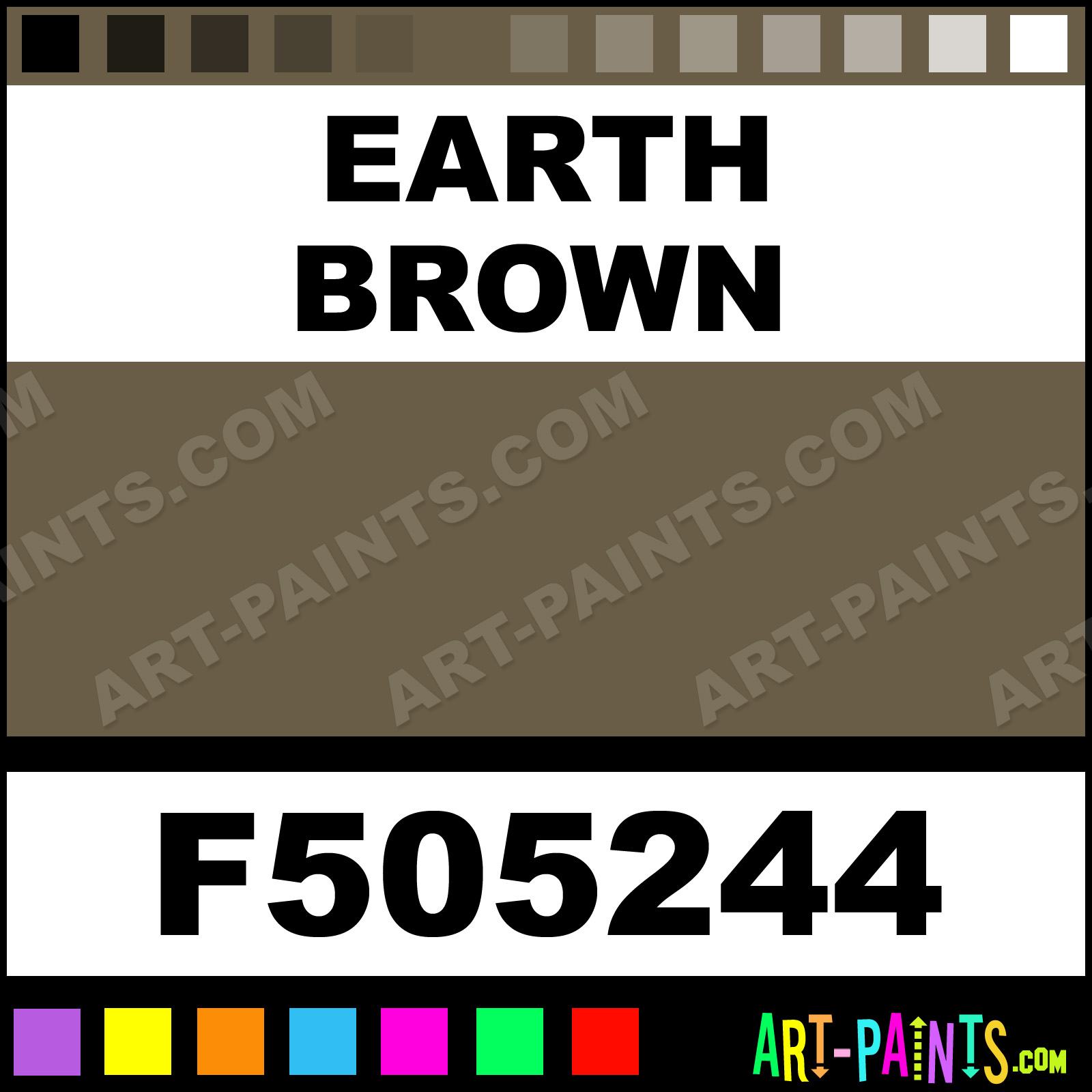 This beautiful Military Model Metal Paint Color shade is called Earth Brown, and comes from a company called Floquil. Their product number, along with the HTML color code, RGB, and CMYK codes are listed below. This Beautiful Shade of Earth Brown and other Metal and Metallic Paint Colors can be found in the Floquil Military Model Art Paint Gallery! Also be sure to browse through the other wonderful Professional Paint Color Galleries to see more of Floquil Military Model Metal Paints and other Metallic Paint Manufacturers.   -Art-Paints.com
