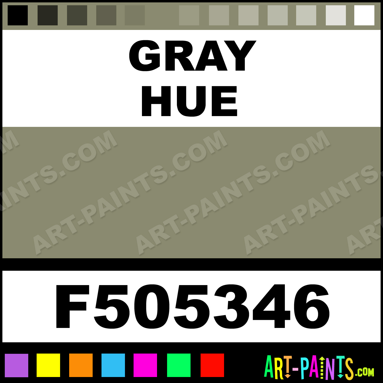 This beautiful Military Model Metal Paint Color shade is called Gray, and comes from a company called Floquil. Their product number, along with the HTML color code, RGB, and CMYK codes are listed below. This Beautiful Shade of Gray and other Metal and Metallic Paint Colors can be found in the Floquil Military Model Art Paint Gallery! Also be sure to browse through the other wonderful Professional Paint Color Galleries to see more of Floquil Military Model Metal Paints and other Metallic Paint Manufacturers.   -Art-Paints.com
