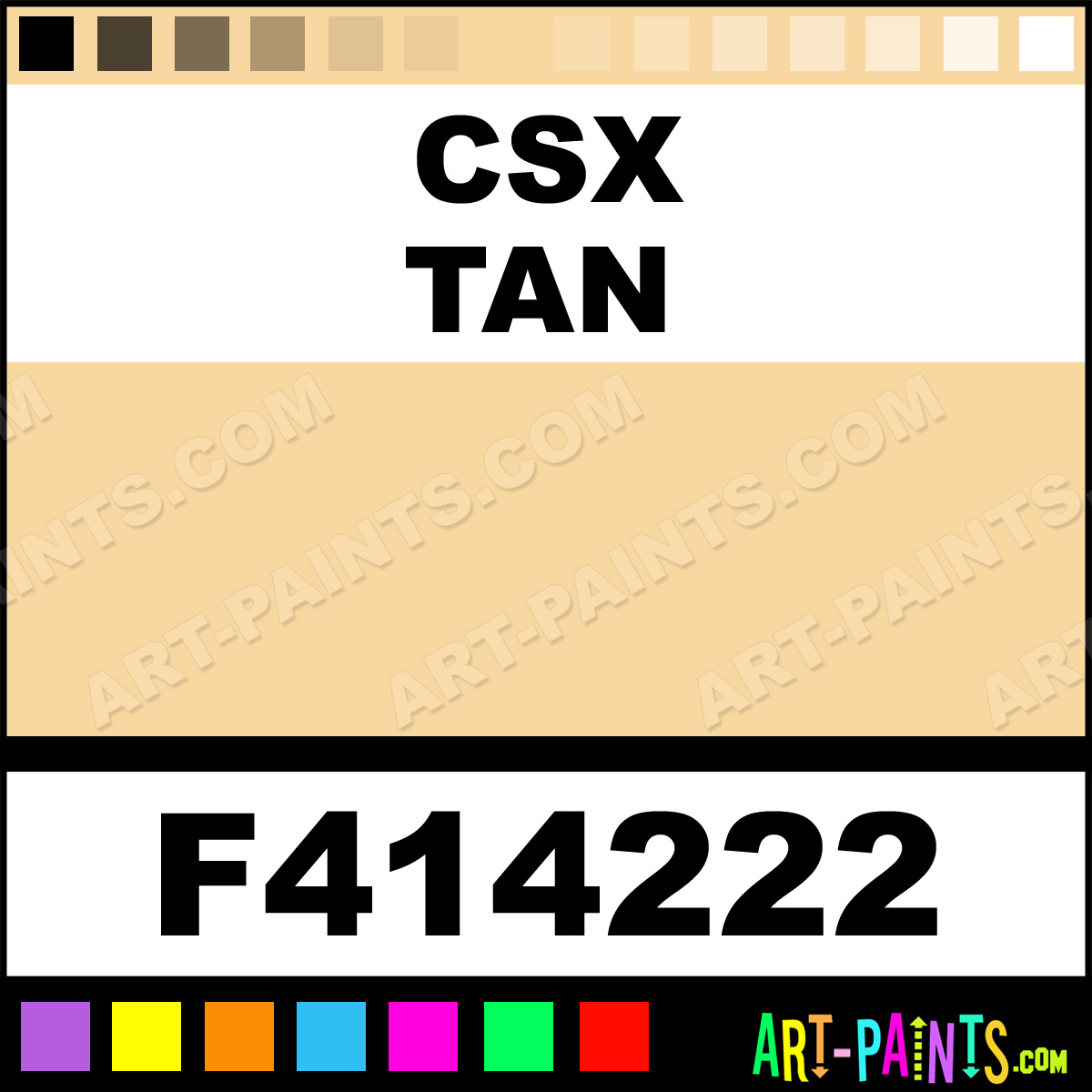 This beautiful Railroad Metal Paint Color shade is called CSX Tan, and comes from a company called Floquil. Their product number, along with the HTML color code, RGB, and CMYK codes are listed below. This Beautiful Shade of CSX Tan and other Metal and Metallic Paint Colors can be found in the Floquil Railroad Art Paint Gallery! Also be sure to browse through the other wonderful Professional Paint Color Galleries to see more of Floquil Railroad Metal Paints and other Metallic Paint Manufacturers.   -Art-Paints.com