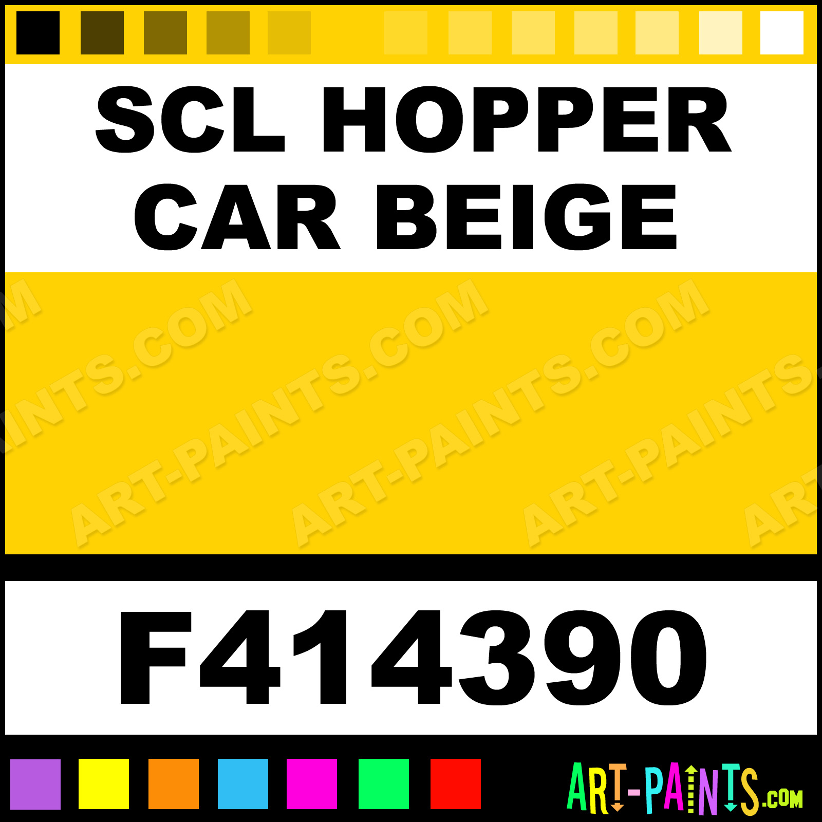 This beautiful Railroad Metal Paint Color shade is called SCL Hopper Car Beige, and comes from a company called Floquil. Their product number, along with the HTML color code, RGB, and CMYK codes are listed below. This Beautiful Shade of SCL Hopper Car Beige and other Metal and Metallic Paint Colors can be found in the Floquil Railroad Art Paint Gallery! Also be sure to browse through the other wonderful Professional Paint Color Galleries to see more of Floquil Railroad Metal Paints and other Metallic Paint Manufacturers.   -Art-Paints.com