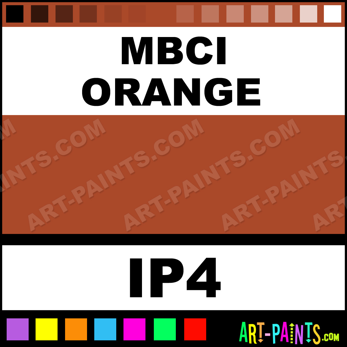 This beautiful Industrial Metal or Metallic Paint shade is called MBCI Orange, and comes from a company called Intercoastal. Their product number, along with the HTML color code, RGB, and CMYK codes are listed below. This Beautiful Shade of MBCI Orange and others can be found in the Intercoastal Industrial Art Paint Gallery! Also be sure to browse through the other wonderful Professional Color Galleries to see more of Intercoastal Industrial Metal Paints and other Metal and Metallic Paint Manufacturers.   -Art-Paints.com