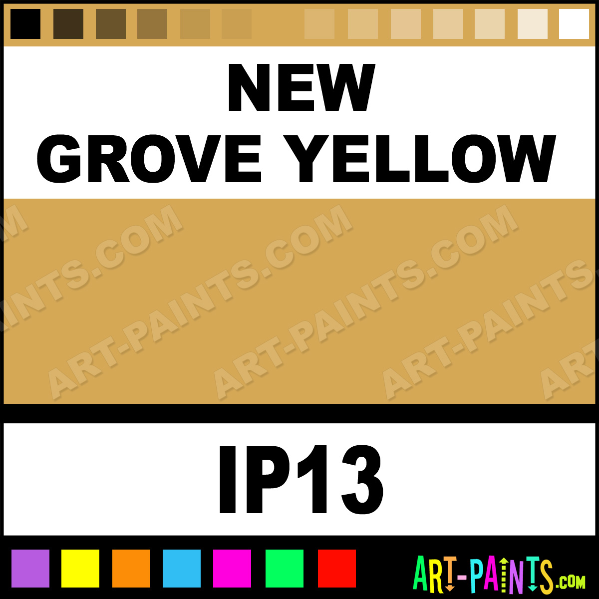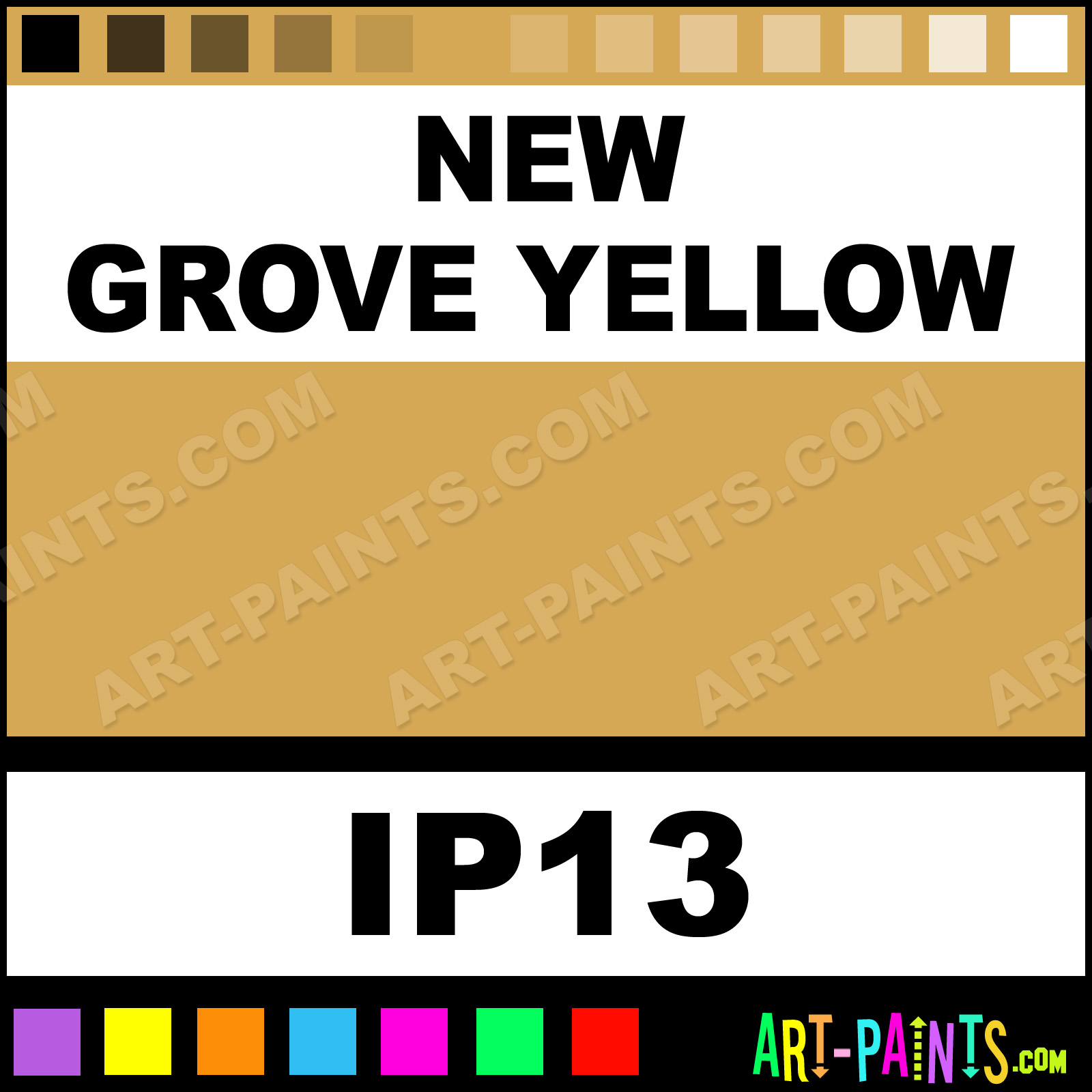This beautiful Industrial Metal or Metallic Paint shade is called New Grove Yellow, and comes from a company called Intercoastal. Their product number, along with the HTML color code, RGB, and CMYK codes are listed below. This Beautiful Shade of New Grove Yellow and others can be found in the Intercoastal Industrial Art Paint Gallery! Also be sure to browse through the other wonderful Professional Color Galleries to see more of Intercoastal Industrial Metal Paints and other Metal and Metallic Paint Manufacturers.   -Art-Paints.com