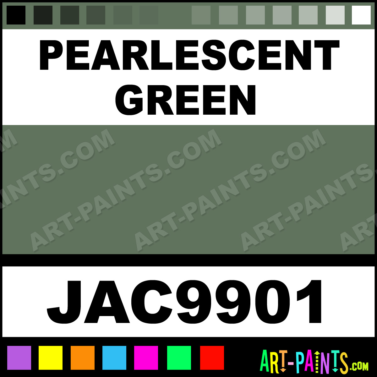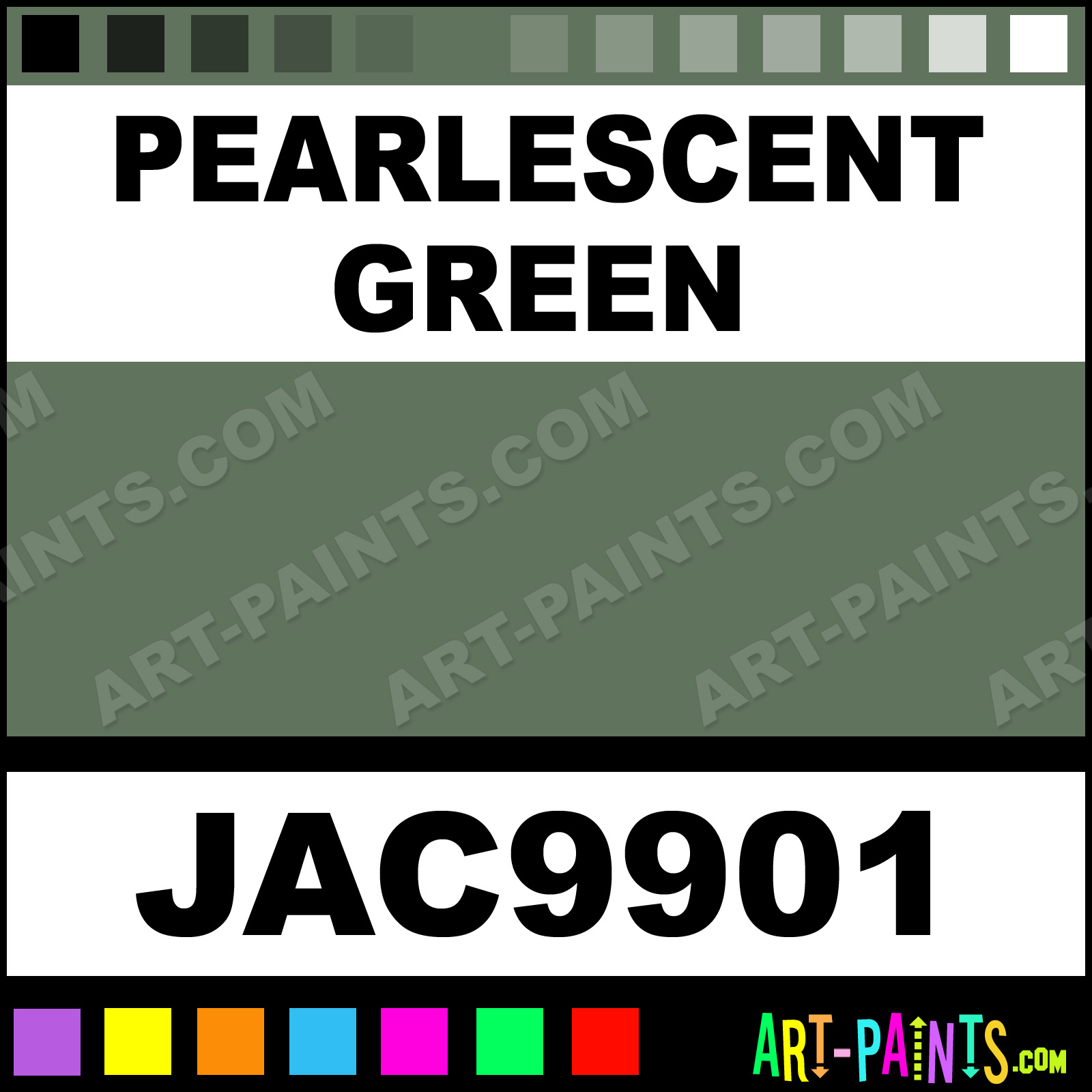 This beautiful Halo and Jewel Fabric Metal Paint Color shade is called Pearlescent Green, and comes from a company called Jacquard. Their product number, along with the HTML color code, RGB, and CMYK codes are listed below. This Beautiful Shade of Pearlescent Green and other Metal and Metallic Paint Colors can be found in the Jacquard Halo and Jewel Fabric Art Paint Gallery! Also be sure to browse through the other wonderful Professional Paint Color Galleries to see more of Jacquard Halo and Jewel Fabric Metal Paints and other Metallic Paint Manufacturers.   -Art-Paints.com