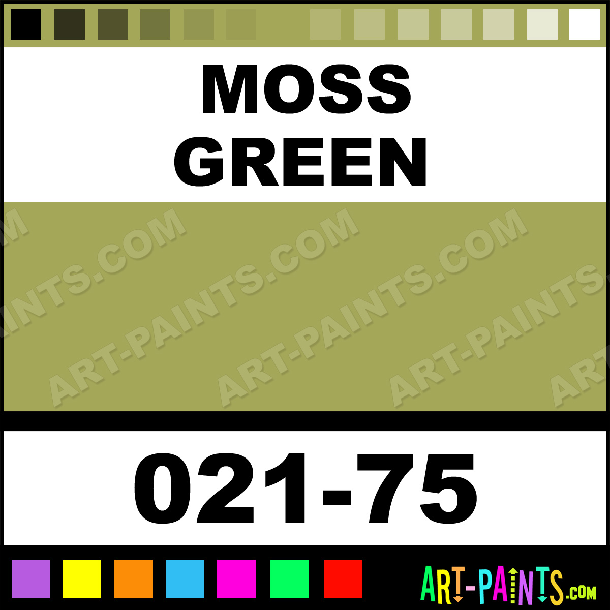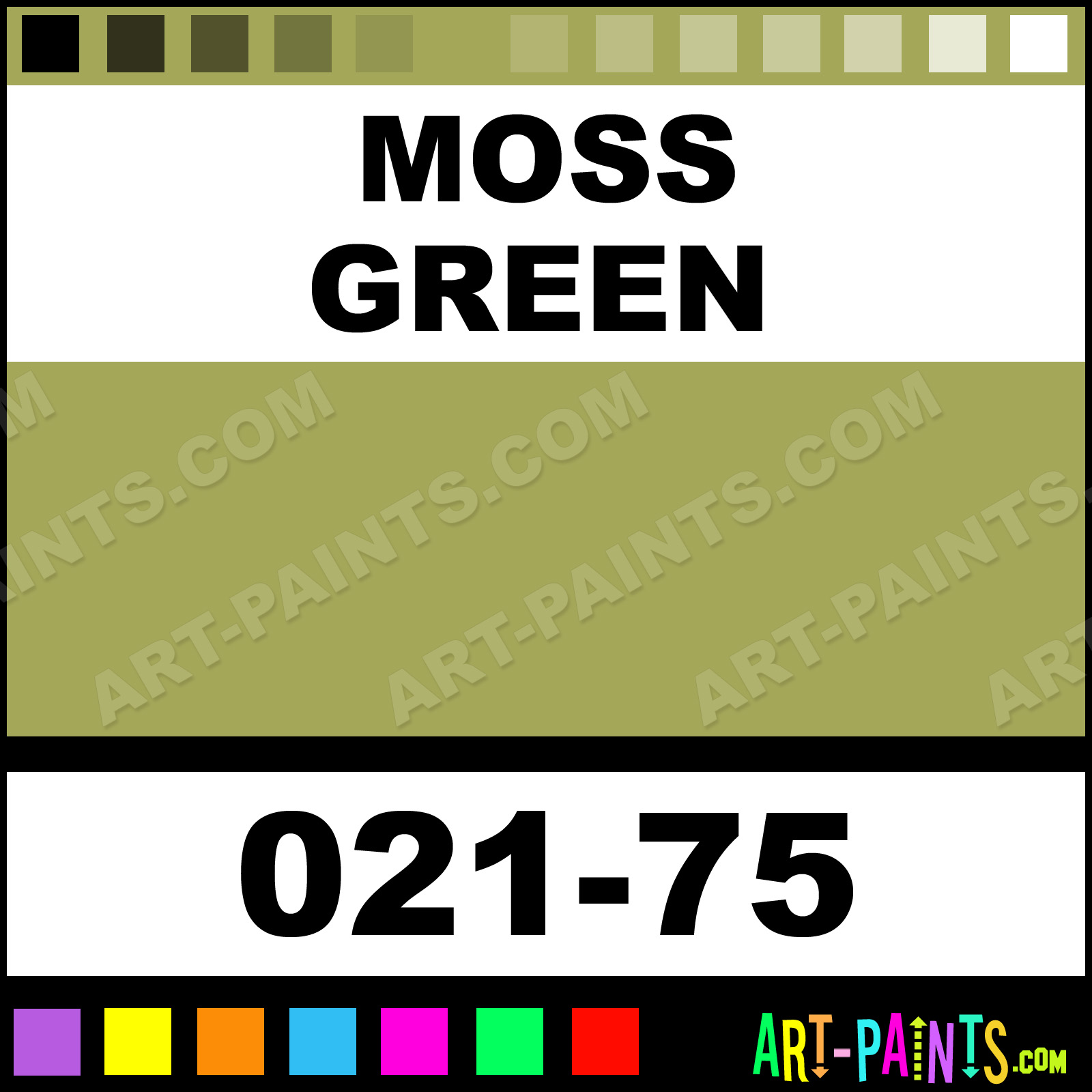 This beautiful Artists Colors Metal or Metallic Paint shade is called Moss Green, and comes from a company called Jo Sonja. Their product number, along with the HTML color code, RGB, and CMYK codes are listed below. This Beautiful Shade of Moss Green and others can be found in the Jo Sonja Artists Colors Art Paint Gallery! Also be sure to browse through the other wonderful Professional Color Galleries to see more of Jo Sonja Artists Colors Metal Paints and other Metal and Metallic Paint Manufacturers.   -Art-Paints.com