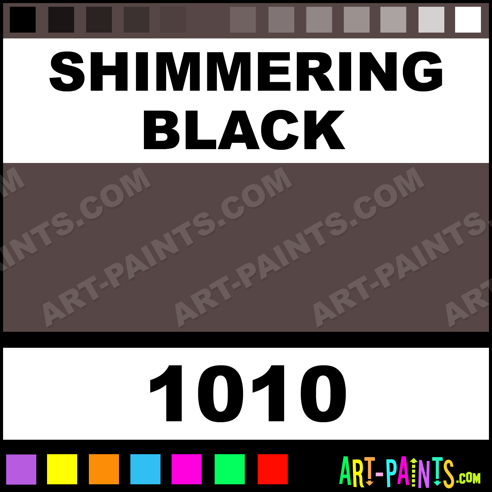 This beautiful Antique Ceramic Metal Paint Color shade is called Shimmering Black, and comes from a company called Kimple. Their product number, along with the HTML color code, RGB, and CMYK codes are listed below. This Beautiful Shade of Shimmering Black and other Metal and Metallic Paint Colors can be found in the Kimple Antique Ceramic Art Paint Gallery! Also be sure to browse through the other wonderful Professional Paint Color Galleries to see more of Kimple Antique Ceramic Metal Paints and other Metallic Paint Manufacturers.   -Art-Paints.com