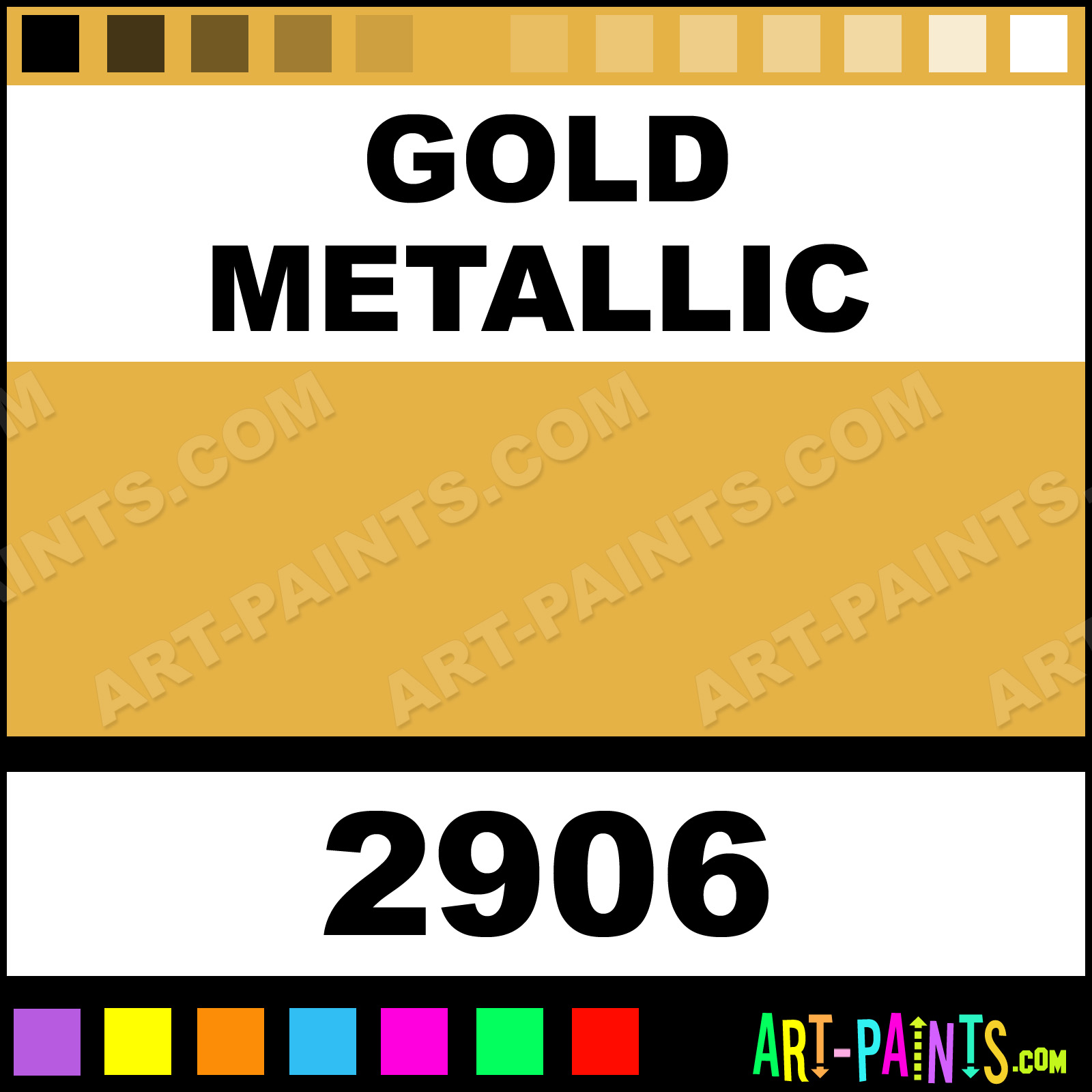 This beautiful Outdoor Spaces Metallic Metal Paint Color shade is called Gold Metallic, and comes from a company called Krylon. Their product number, along with the HTML color code, RGB, and CMYK codes are listed below. This Beautiful Shade of Gold Metallic and other Metal and Metallic Paint Colors can be found in the Krylon Outdoor Spaces Metallic Art Paint Gallery! Also be sure to browse through the other wonderful Professional Paint Color Galleries to see more of Krylon Outdoor Spaces Metallic Metal Paints and other Metallic Paint Manufacturers.   -Art-Paints.com