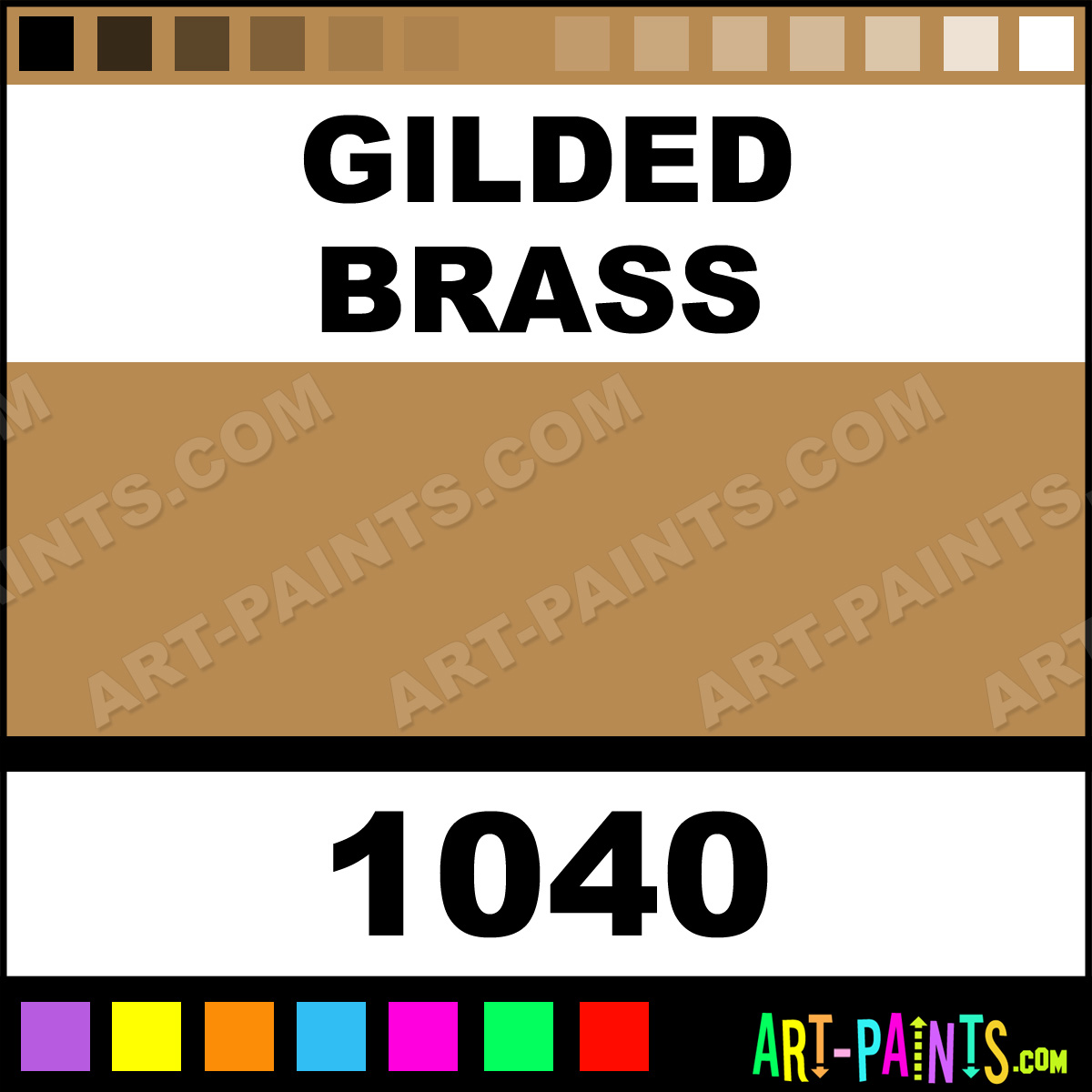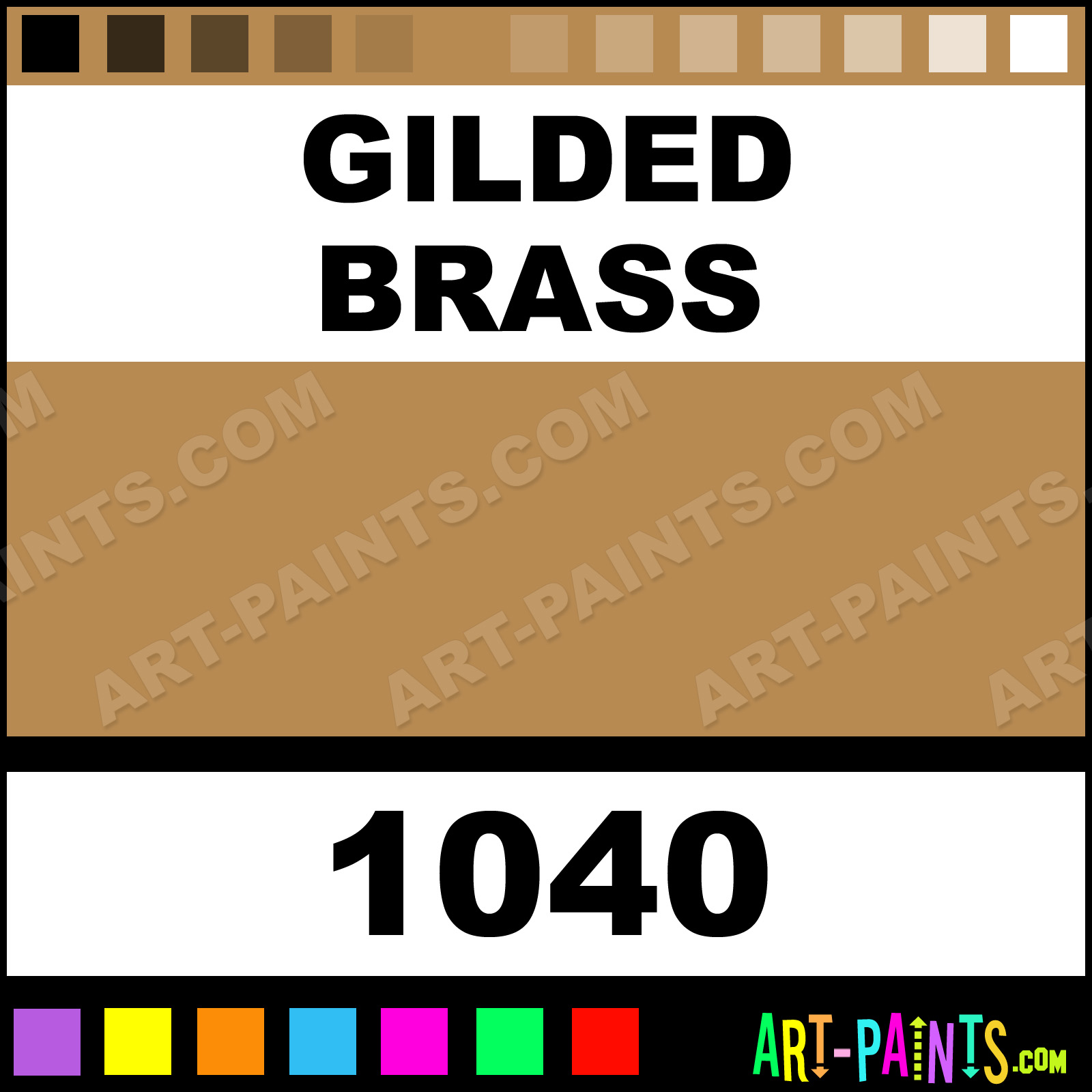 This beautiful Premium Metallic Metal Paint Color shade is called Gilded Brass, and comes from a company called Krylon. Their product number, along with the HTML color code, RGB, and CMYK codes are listed below. This Beautiful Shade of Gilded Brass and other Metal and Metallic Paint Colors can be found in the Krylon Premium Metallic Art Paint Gallery! Also be sure to browse through the other wonderful Professional Paint Color Galleries to see more of Krylon Premium Metallic Metal Paints and other Metallic Paint Manufacturers.   -Art-Paints.com