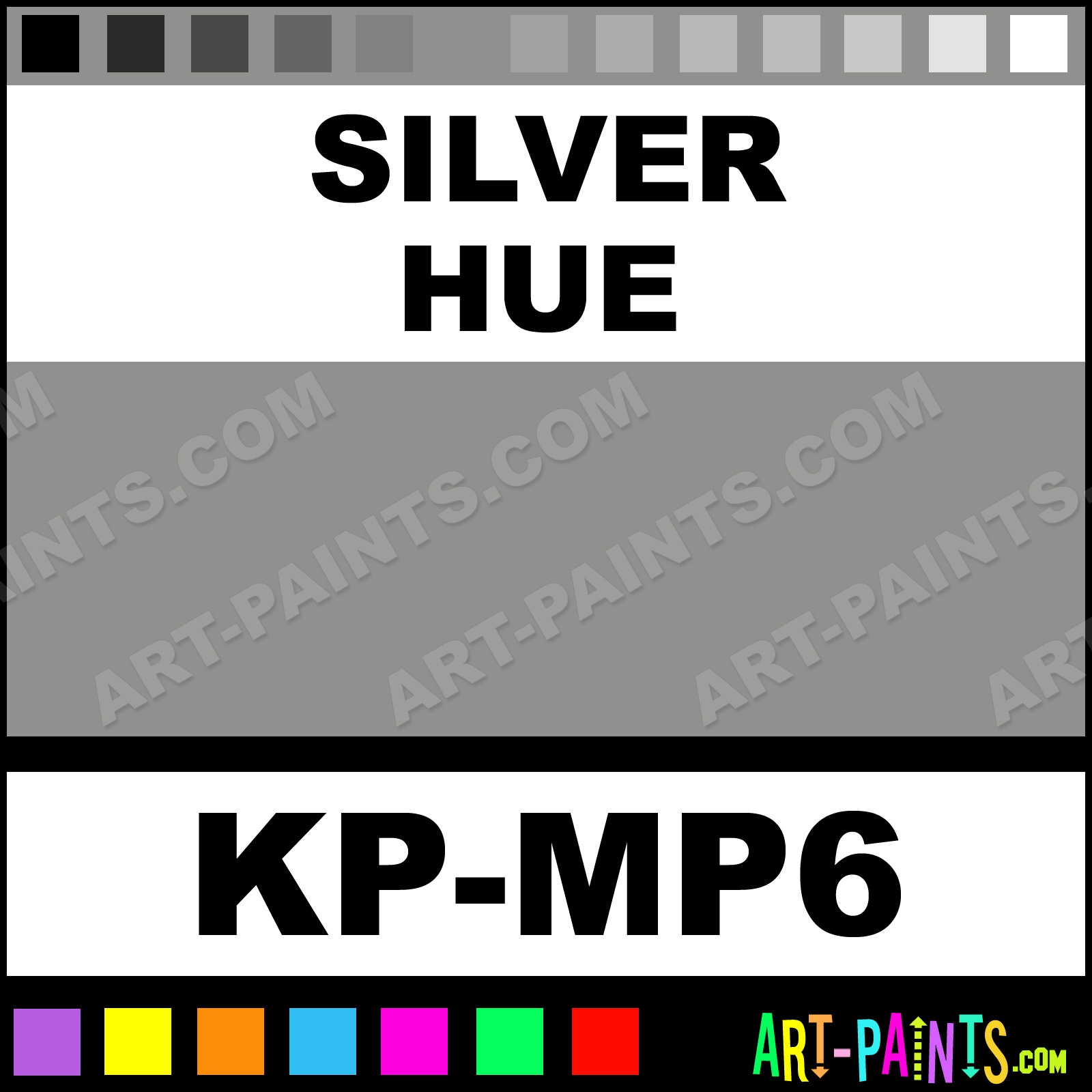 This beautiful Metallic Metal or Metallic Paint shade is called Silver, and comes from a company called Kryolan. Their product number, along with the HTML color code, RGB, and CMYK codes are listed below. This Beautiful Shade of Silver and others can be found in the Kryolan Metallic Art Paint Gallery! Also be sure to browse through the other wonderful Professional Color Galleries to see more of Kryolan Metallic Metal Paints and other Metal and Metallic Paint Manufacturers.   -Art-Paints.com