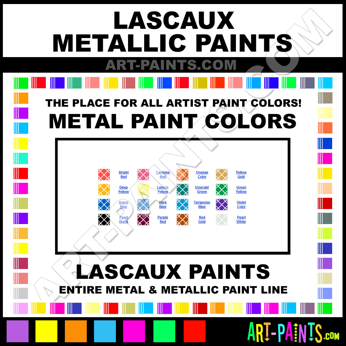 Lascaux knows Metal and Metallic Paints! They make wonderful brands of Paint for all types of artists. They strive to perfect the process of color and are one of the most popular Metal Paint Brand companies in the world. Whether this Paint is used for Metal Surfaces or just giving a Metallic look, you're sure to enjoy their entire collection. Lascaux makes a couple different types of Metal Paints including its Perlacryl Paints and its Studio Bronze Paints! Choose an Metal Paint type below to view that Brand and Colors and Hues.     -Art-Paints.com