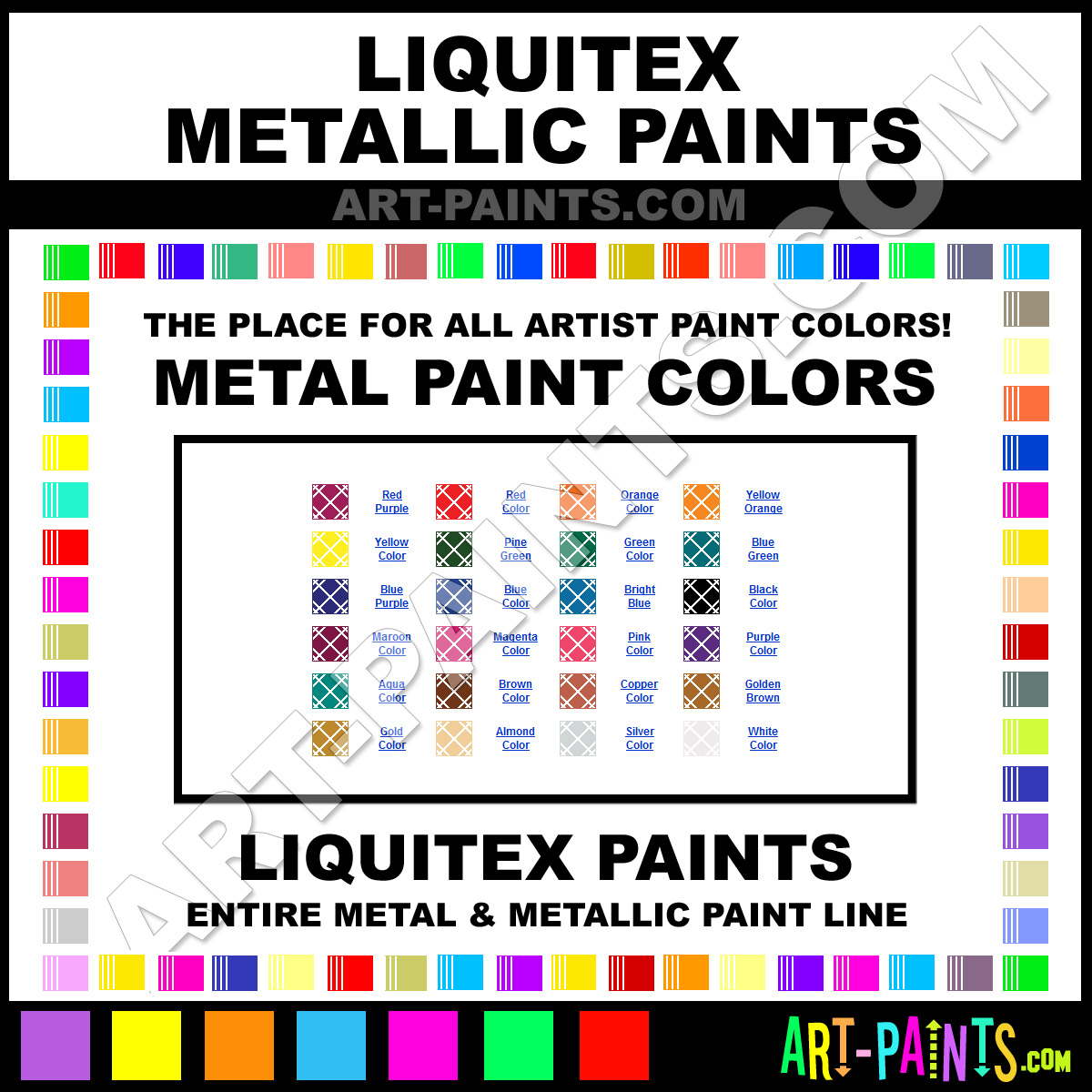 Liquitex makes beautiful Metal Paint brands and Metallic Paints. With a complete line of Glossies Paints and Interference Colors Metal Paint Lines, with 30 colors in all, available in just about every Metal and Metallic hue and color, they will no doubt keep you painting and smiling at the same time. Each Brand is unique and the variety of paints is exquisite!