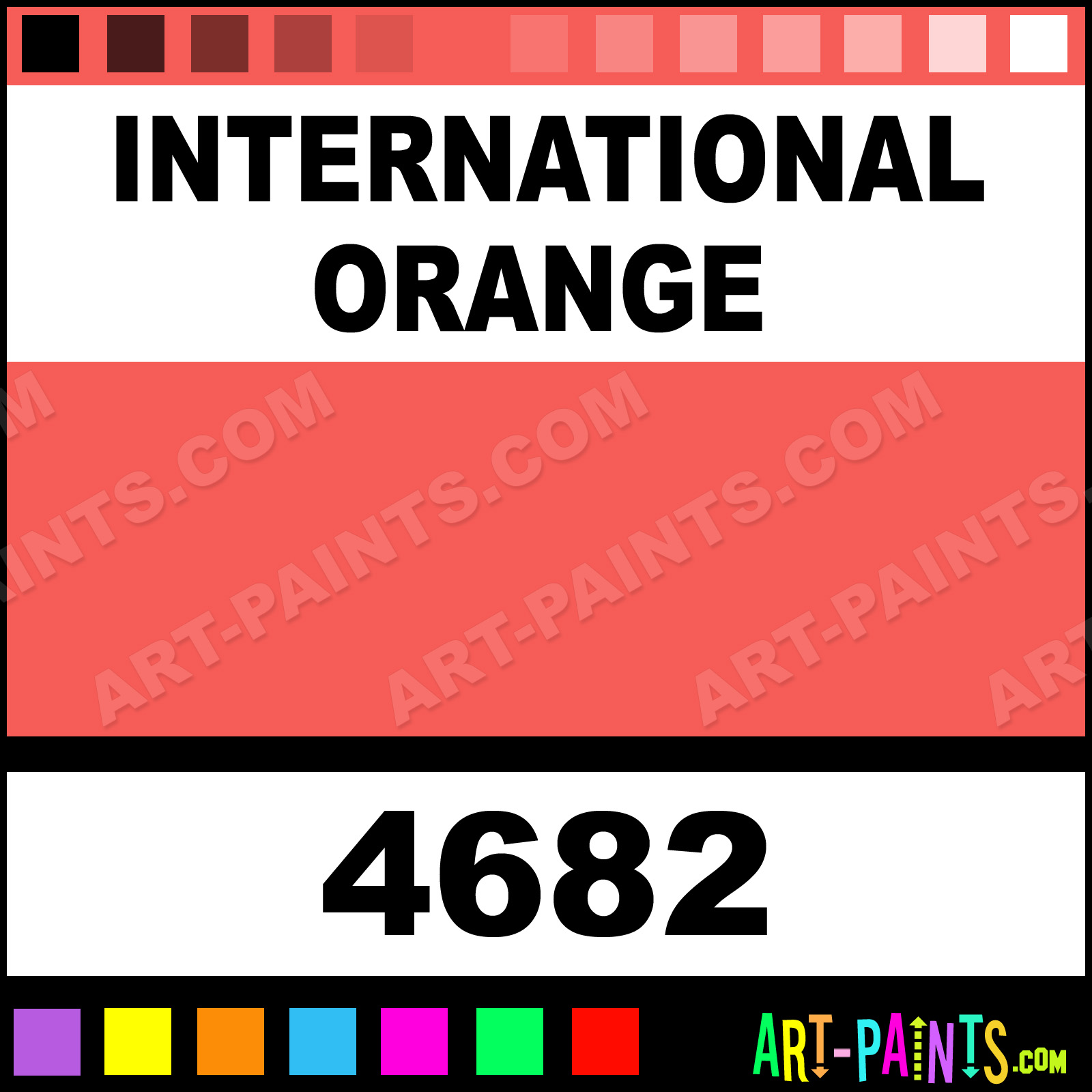 This beautiful Artist Metal Paint Color shade is called International Orange, and comes from a company called Model Master. Their product number, along with the HTML color code, RGB, and CMYK codes are listed below. This Beautiful Shade of International Orange and other Metal and Metallic Paint Colors can be found in the Model Master Artist Art Paint Gallery! Also be sure to browse through the other wonderful Professional Paint Color Galleries to see more of Model Master Artist Metal Paints and other Metallic Paint Manufacturers.   -Art-Paints.com