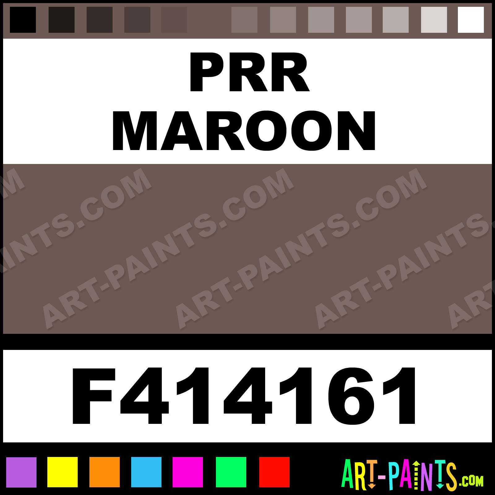 This beautiful Model Metal Paint Color shade is called PRR Maroon, and comes from a company called Model Master. Their product number, along with the HTML color code, RGB, and CMYK codes are listed below. This Beautiful Shade of PRR Maroon and other Metal and Metallic Paint Colors can be found in the Model Master Model Art Paint Gallery! Also be sure to browse through the other wonderful Professional Paint Color Galleries to see more of Model Master Model Metal Paints and other Metallic Paint Manufacturers.   -Art-Paints.com