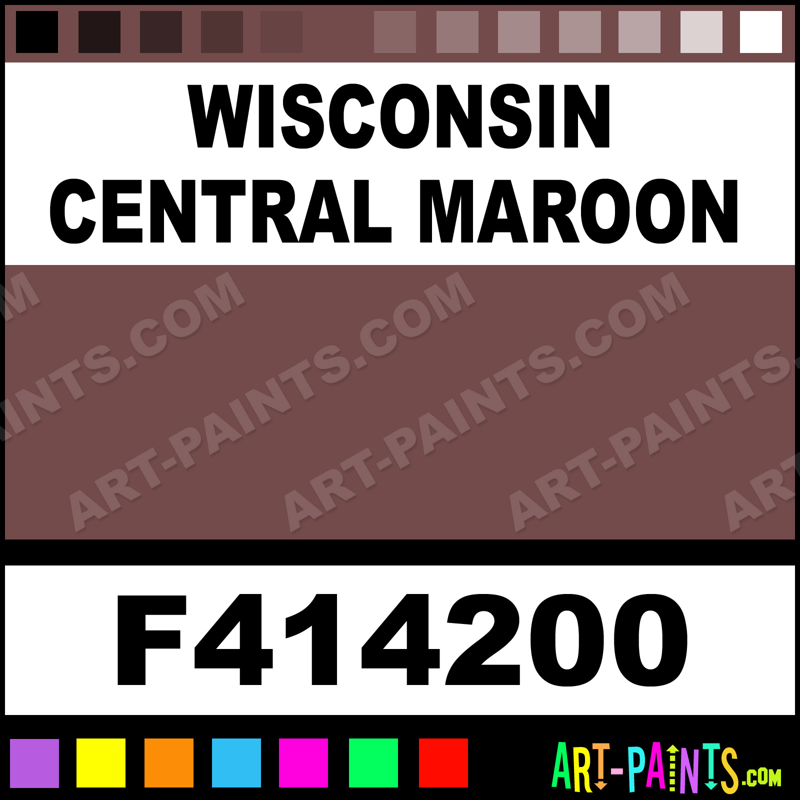 This beautiful Model Metal Paint Color shade is called Wisconsin Central Maroon, and comes from a company called Model Master. Their product number, along with the HTML color code, RGB, and CMYK codes are listed below. This Beautiful Shade of Wisconsin Central Maroon and other Metal and Metallic Paint Colors can be found in the Model Master Model Art Paint Gallery! Also be sure to browse through the other wonderful Professional Paint Color Galleries to see more of Model Master Model Metal Paints and other Metallic Paint Manufacturers.   -Art-Paints.com