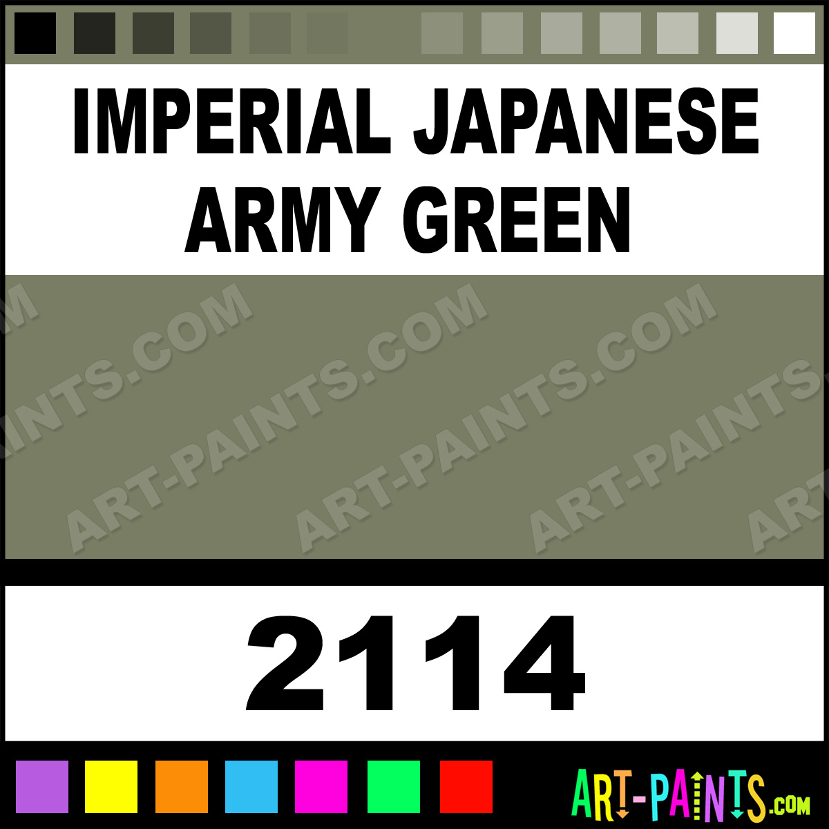 This beautiful Testors Metal Paint Color shade is called Imperial Japanese Army Green, and comes from a company called Model Master. Their product number, along with the HTML color code, RGB, and CMYK codes are listed below. This Beautiful Shade of Imperial Japanese Army Green and other Metal and Metallic Paint Colors can be found in the Model Master Testors Art Paint Gallery! Also be sure to browse through the other wonderful Professional Paint Color Galleries to see more of Model Master Testors Metal Paints and other Metallic Paint Manufacturers.   -Art-Paints.com