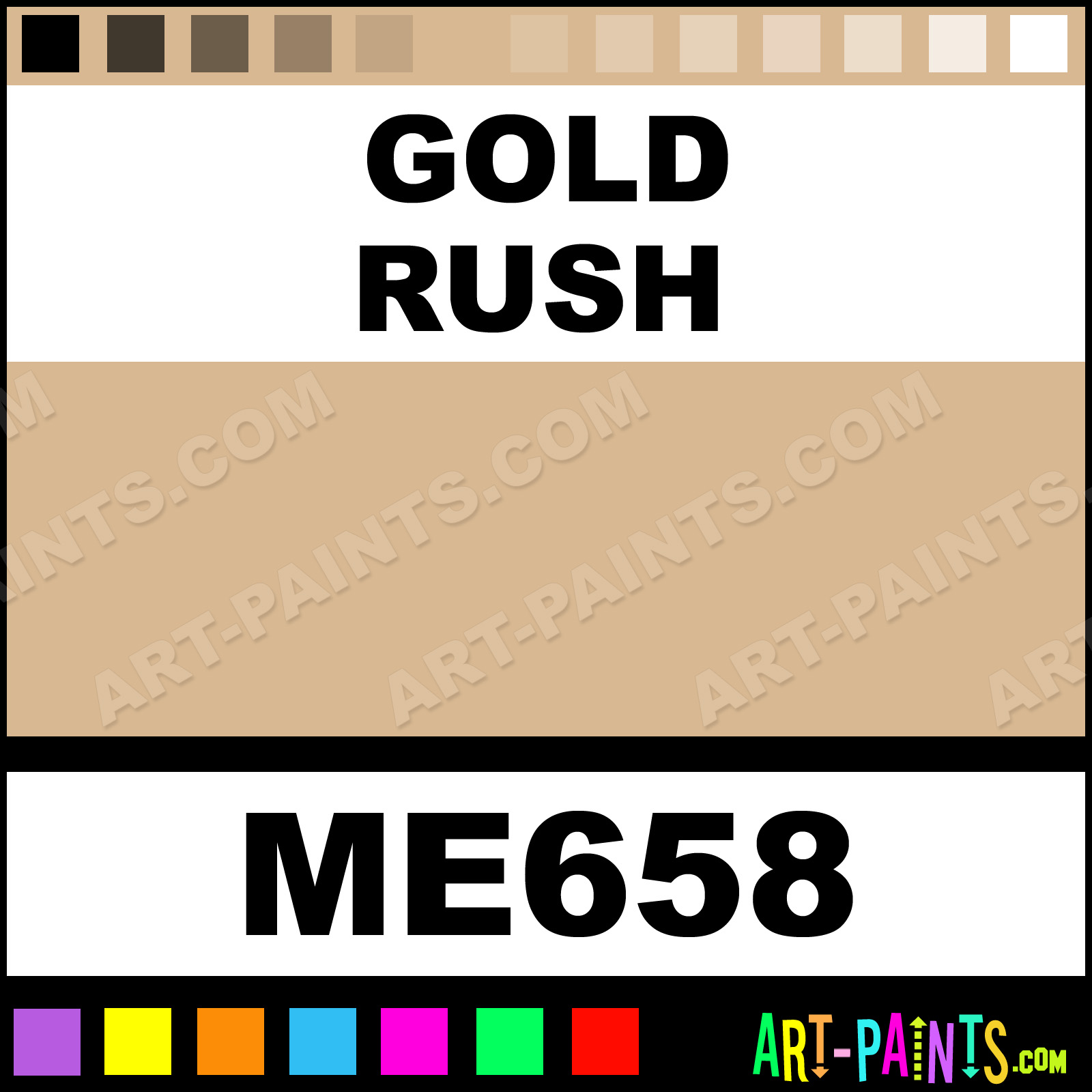 This beautiful Metallic Metal Paint Color shade is called Gold Rush, and comes from a company called Modern Masters. Their product number, along with the HTML color code, RGB, and CMYK codes are listed below. This Beautiful Shade of Gold Rush and other Metal and Metallic Paint Colors can be found in the Modern Masters Metallic Art Paint Gallery! Also be sure to browse through the other wonderful Professional Paint Color Galleries to see more of Modern Masters Metallic Metal Paints and other Metallic Paint Manufacturers.   -Art-Paints.com