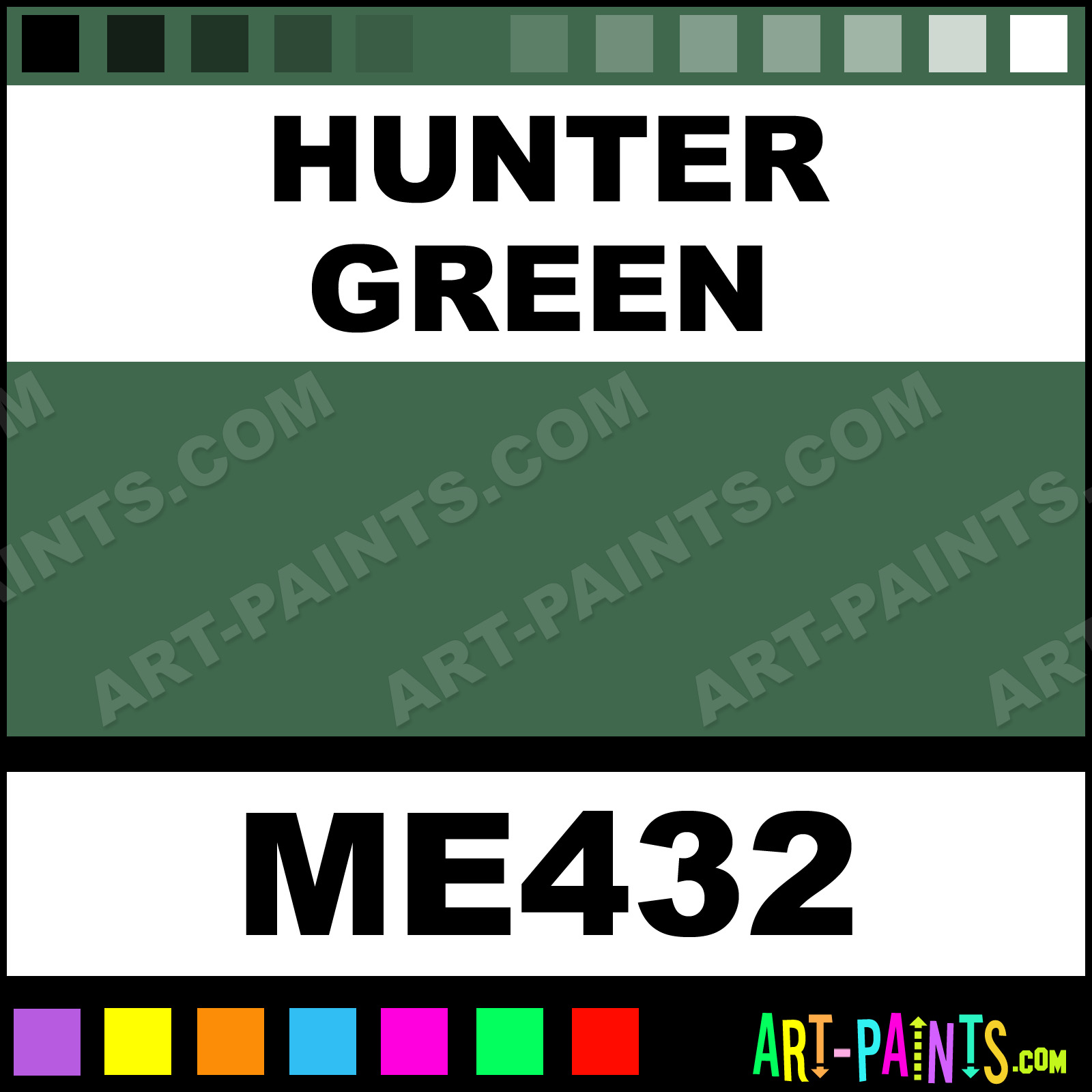 This beautiful Metallic Metal Paint Color shade is called Hunter Green, and comes from a company called Modern Masters. Their product number, along with the HTML color code, RGB, and CMYK codes are listed below. This Beautiful Shade of Hunter Green and other Metal and Metallic Paint Colors can be found in the Modern Masters Metallic Art Paint Gallery! Also be sure to browse through the other wonderful Professional Paint Color Galleries to see more of Modern Masters Metallic Metal Paints and other Metallic Paint Manufacturers.   -Art-Paints.com