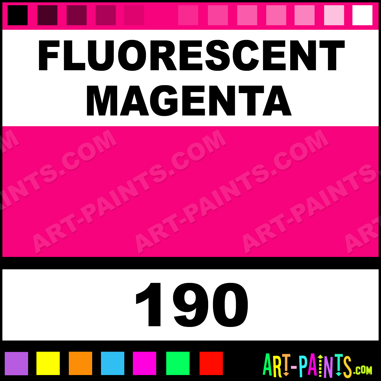 This beautiful Artists Metal or Metallic Paint shade is called Fluorescent Magenta, and comes from a company called Nova. Their product number, along with the HTML color code, RGB, and CMYK codes are listed below. This Beautiful Shade of Fluorescent Magenta and others can be found in the Nova Artists Art Paint Gallery! Also be sure to browse through the other wonderful Professional Color Galleries to see more of Nova Artists Metal Paints and other Metal and Metallic Paint Manufacturers.   -Art-Paints.com