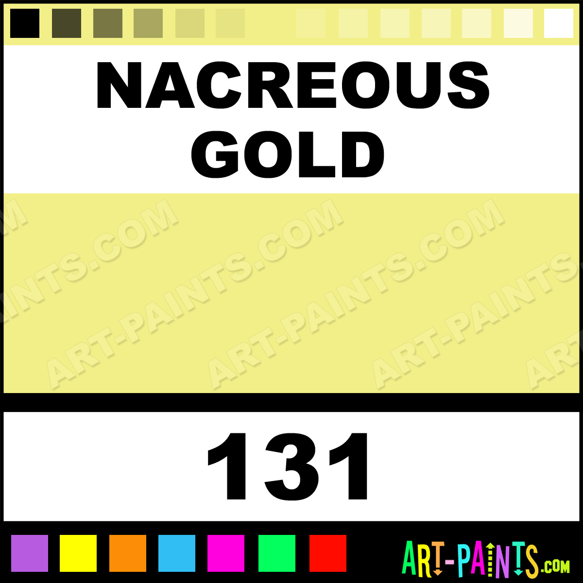 This beautiful Artists Metal or Metallic Paint shade is called Nacreous Gold, and comes from a company called Nova. Their product number, along with the HTML color code, RGB, and CMYK codes are listed below. This Beautiful Shade of Nacreous Gold and others can be found in the Nova Artists Art Paint Gallery! Also be sure to browse through the other wonderful Professional Color Galleries to see more of Nova Artists Metal Paints and other Metal and Metallic Paint Manufacturers.   -Art-Paints.com