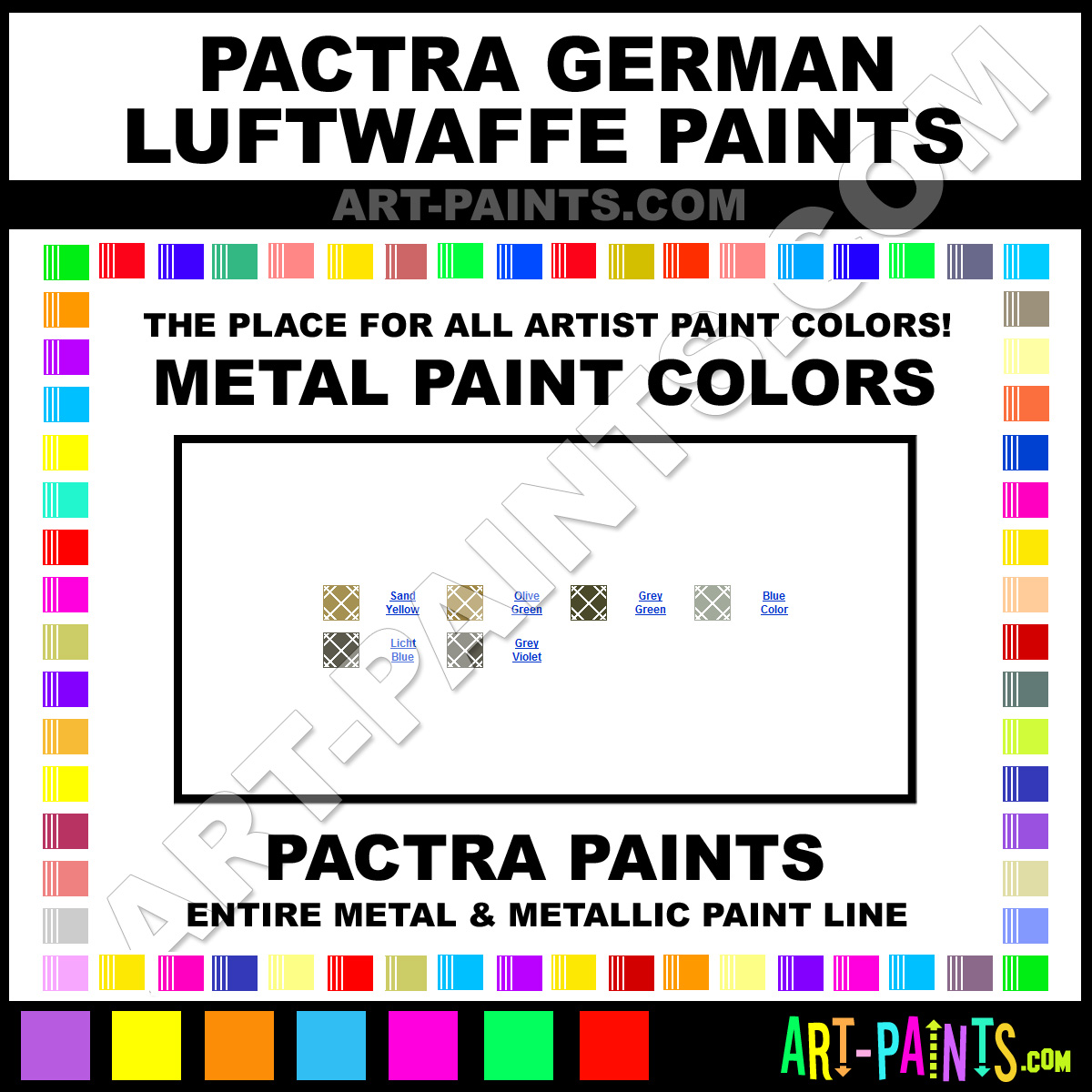 Pactra knows Metal Paints! They make a wonderful brand of Paint called Pactra German Luftwaffe Metal Paint Colors that suits all types of artists. They strive to perfect the process of color, good for Metal surfaces or good for giving you that Metallic look! They are one of the most popular Metal Paint Brand companies in the world. Enjoy their entire paint brand collection below. Pactra makes wonderful Artists Metal and Metallic Paints that everyone is sure to enjoy! Choose an Metal Paint Color below to view that Hue and Colors.     -Art-Paints.com