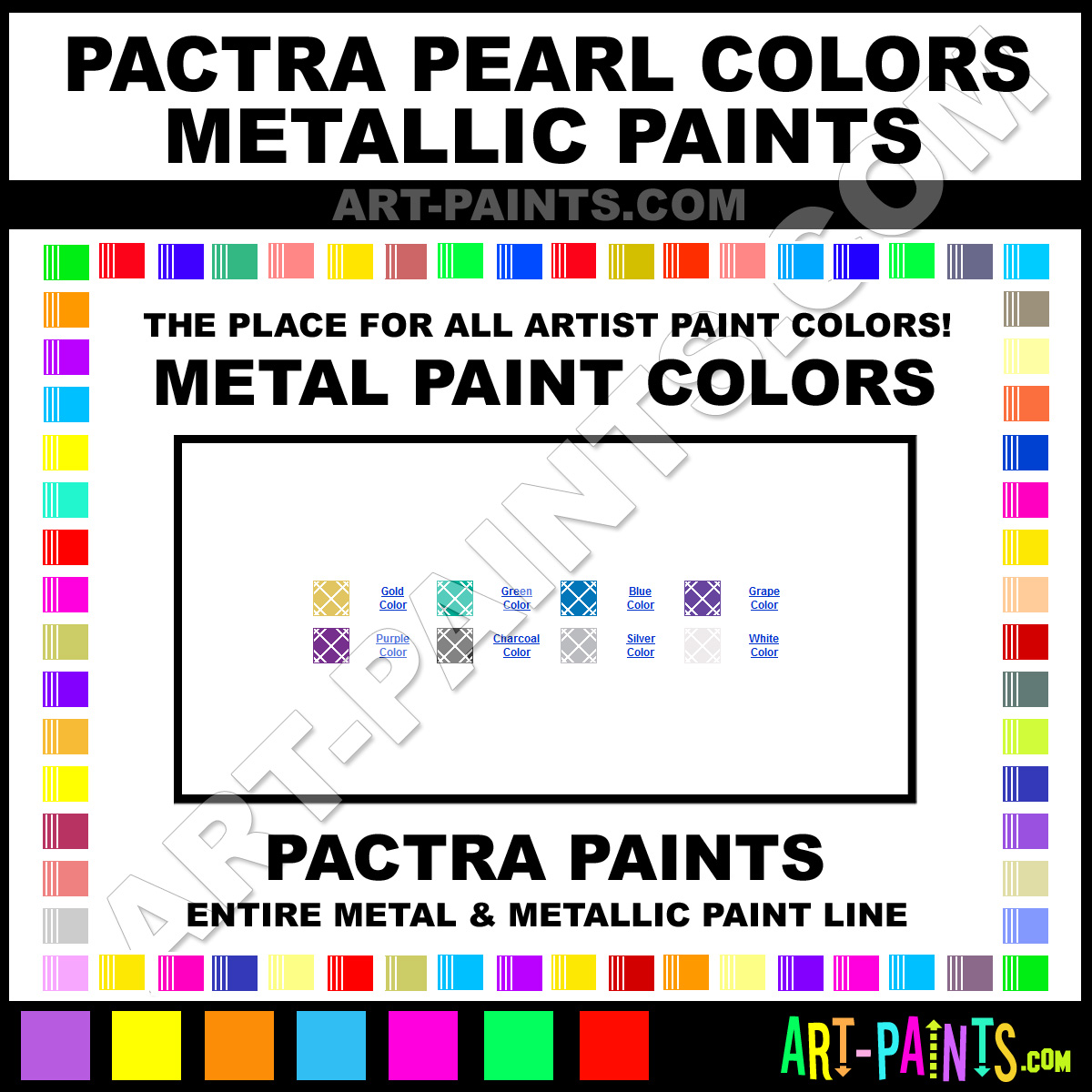 Pactra knows Metal Paints! They make a wonderful brand of Paint called Pactra Pearl Colors Metal Paint Colors that suits all types of artists. They strive to perfect the process of color, good for Metal surfaces or good for giving you that Metallic look! They are one of the most popular Metal Paint Brand companies in the world. Enjoy their entire paint brand collection below. Pactra makes wonderful Artists Metal and Metallic Paints that everyone is sure to enjoy! Choose an Metal Paint Color below to view that Hue and Colors.     -Art-Paints.com