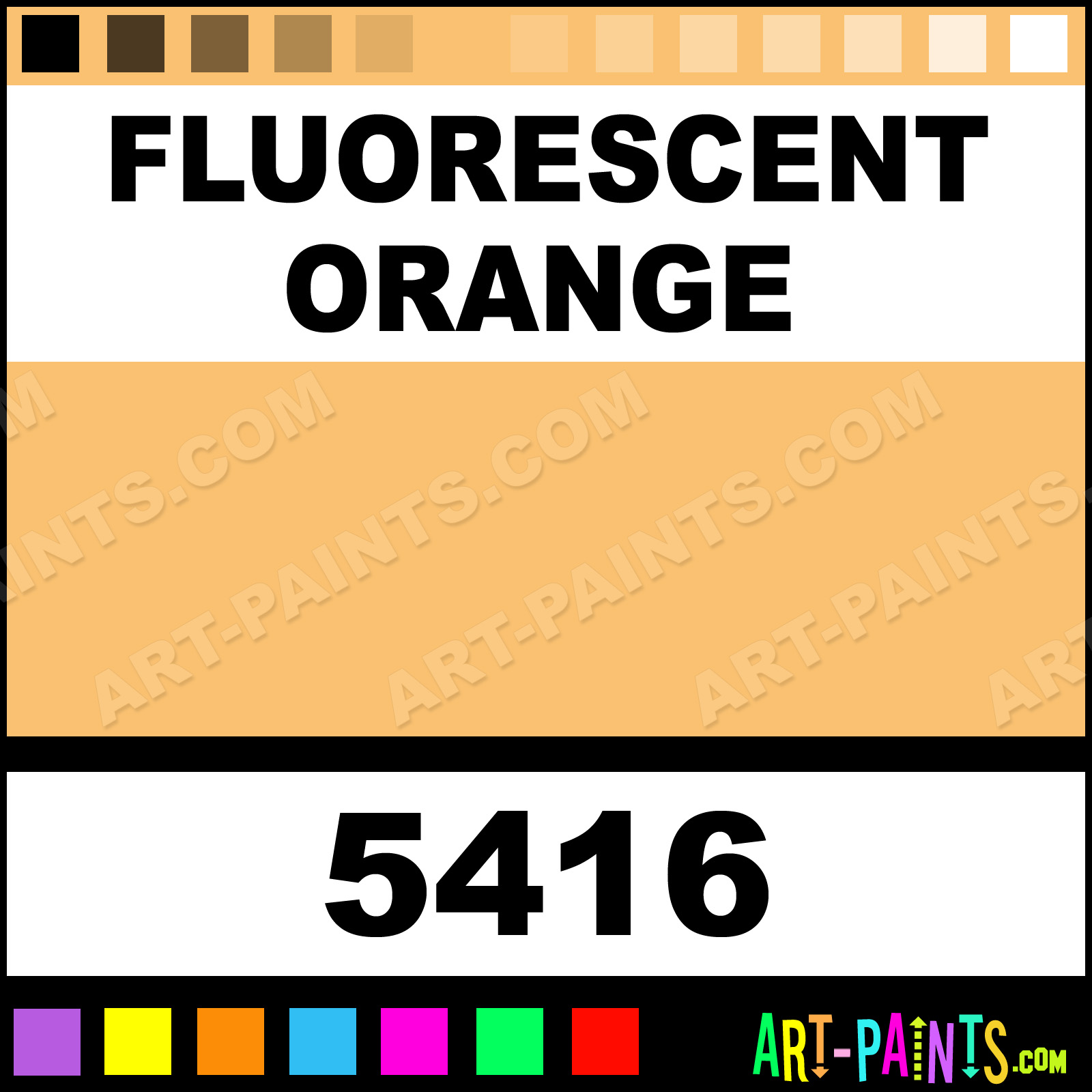 This beautiful Racing Finish Metal Paint Color shade is called Fluorescent Orange, and comes from a company called Pactra. Their product number, along with the HTML color code, RGB, and CMYK codes are listed below. This Beautiful Shade of Fluorescent Orange and other Metal and Metallic Paint Colors can be found in the Pactra Racing Finish Art Paint Gallery! Also be sure to browse through the other wonderful Professional Paint Color Galleries to see more of Pactra Racing Finish Metal Paints and other Metallic Paint Manufacturers.   -Art-Paints.com