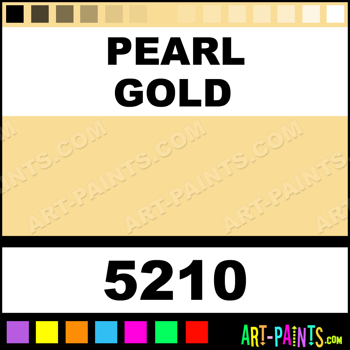 This beautiful Racing Finish Metal Paint Color shade is called Pearl Gold, and comes from a company called Pactra. Their product number, along with the HTML color code, RGB, and CMYK codes are listed below. This Beautiful Shade of Pearl Gold and other Metal and Metallic Paint Colors can be found in the Pactra Racing Finish Art Paint Gallery! Also be sure to browse through the other wonderful Professional Paint Color Galleries to see more of Pactra Racing Finish Metal Paints and other Metallic Paint Manufacturers.   -Art-Paints.com