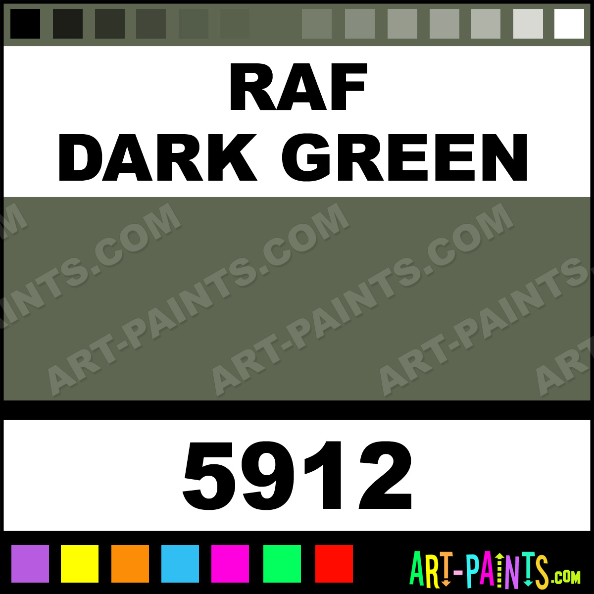 This beautiful Racing Finish Metal Paint Color shade is called RAF Dark Green, and comes from a company called Pactra. Their product number, along with the HTML color code, RGB, and CMYK codes are listed below. This Beautiful Shade of RAF Dark Green and other Metal and Metallic Paint Colors can be found in the Pactra Racing Finish Art Paint Gallery! Also be sure to browse through the other wonderful Professional Paint Color Galleries to see more of Pactra Racing Finish Metal Paints and other Metallic Paint Manufacturers.   -Art-Paints.com